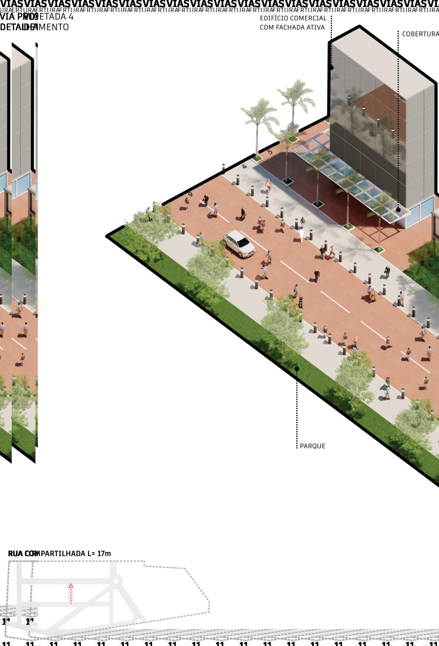 VISTA DA VIA CALÇADA DA RUA COMPARTILHADA E FACHADA ATIVA 53 CONSÓRCIO RC