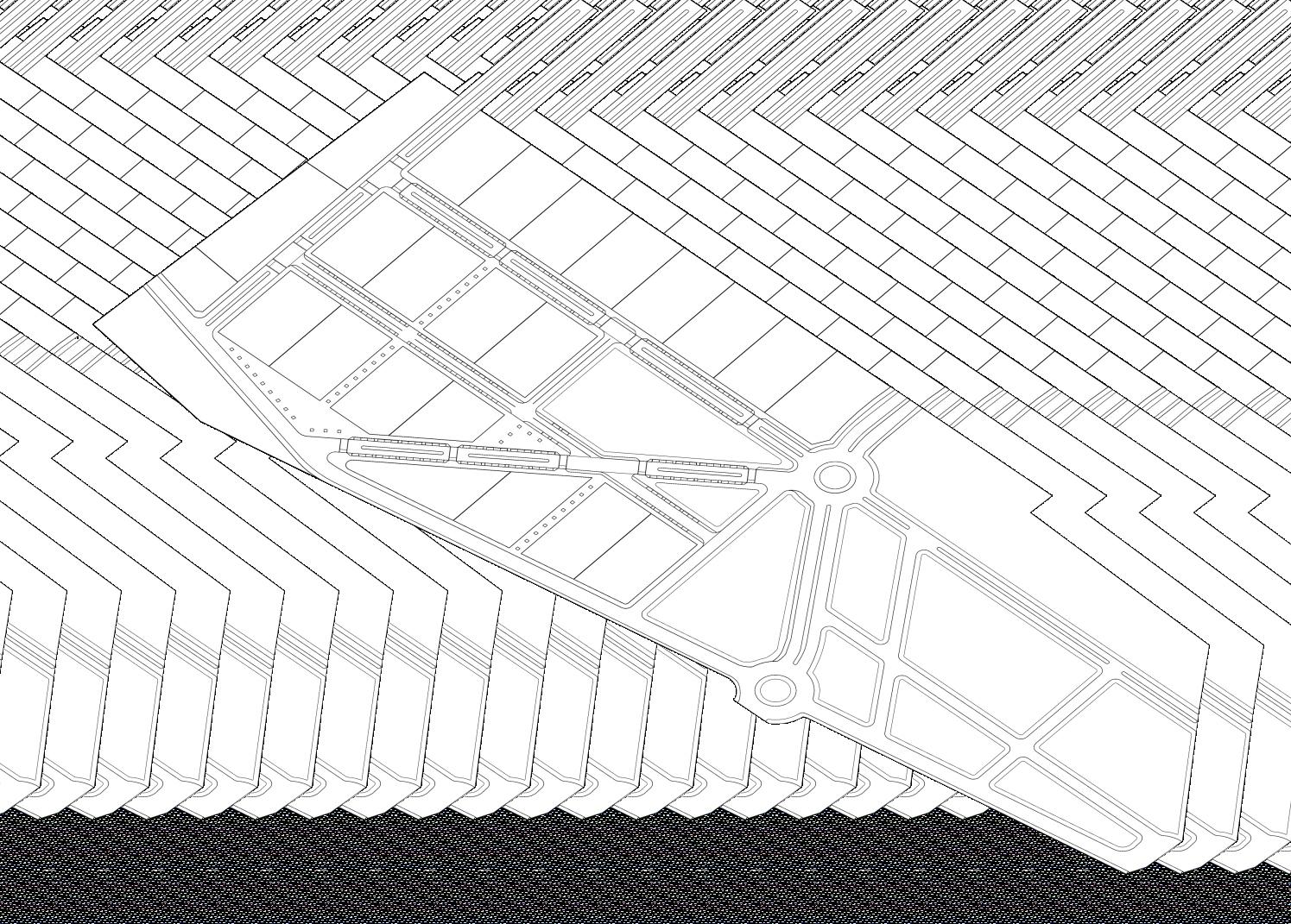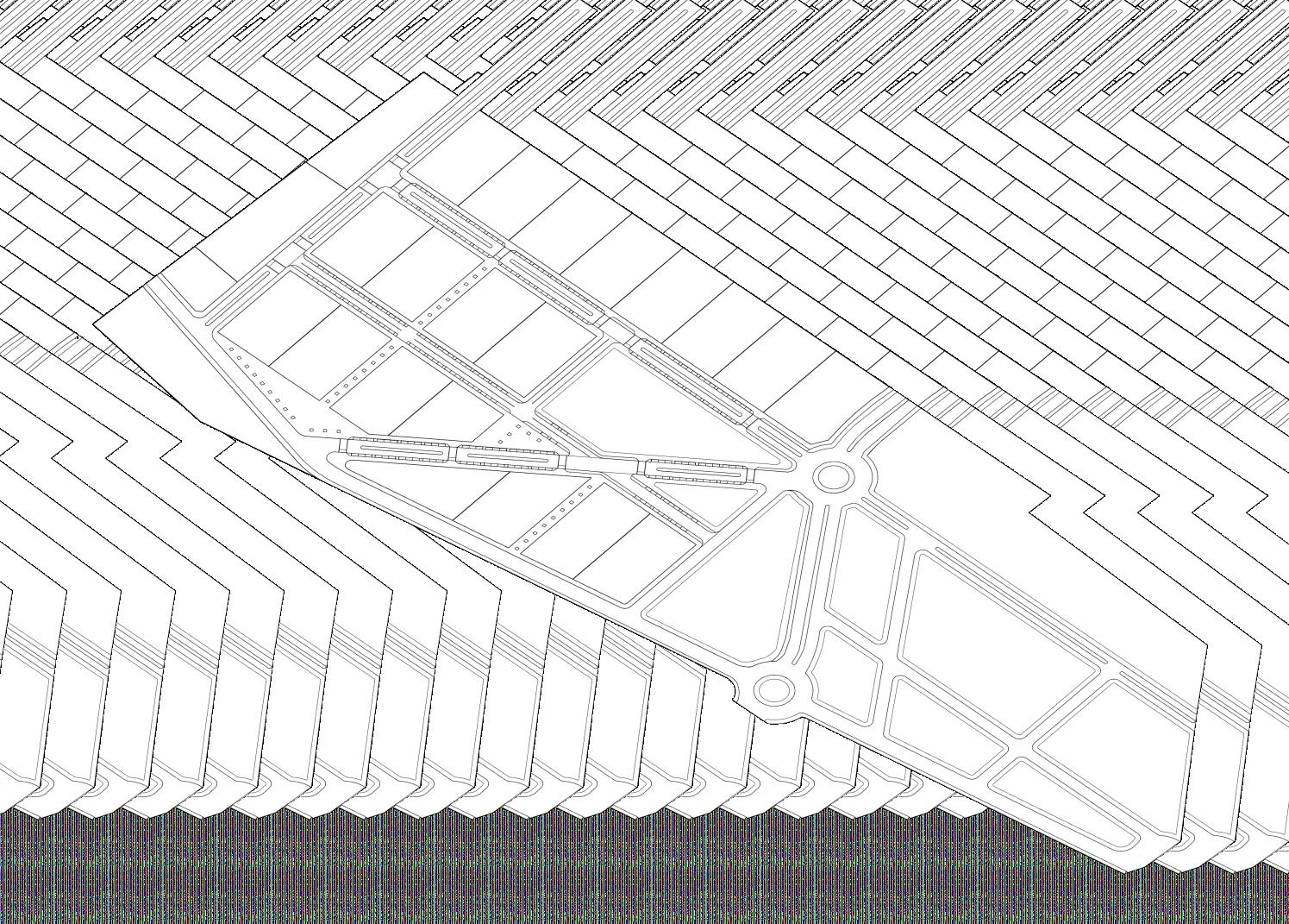 O traçado na Avenida Sen. Roberto Simonsen na ZEPIU-A é o ponto de partida de nossa proposta de parcelamento e ocupação no “Novo Bairro”. Uma rotatória deverá ser o elemento de conexão e recepção do NOVA SIMONSEN, organizando os eixos viários de veículos, pedestres e espaços compartilhados, assim como as quadras urbanas e sua hierarquia de ocupação em relação ao território e espaços urbanos existentes (loteamentos e empreendimentos consolidados), buscando uma “harmonia”entreotecidourbanoexistenteeaproposta. Duas grandes vias (eixo leste-oeste e diagonal), de largura generosa (26 metros) criam um ambiente mais aprazível de quem chega ou sai do bairro, com uma concepção urbana e paisagística agradável e sustentável. Estes mesmos eixos deverão conectar-se com os viários previstos no Plano UrbanísticoZEPIU-Aeosdemaisloteamentosexistentesnoentorno