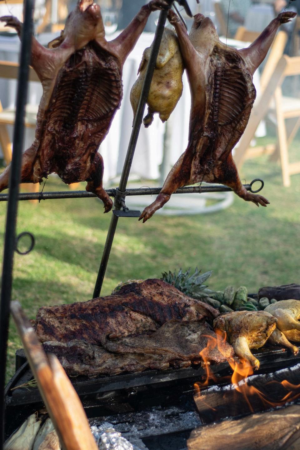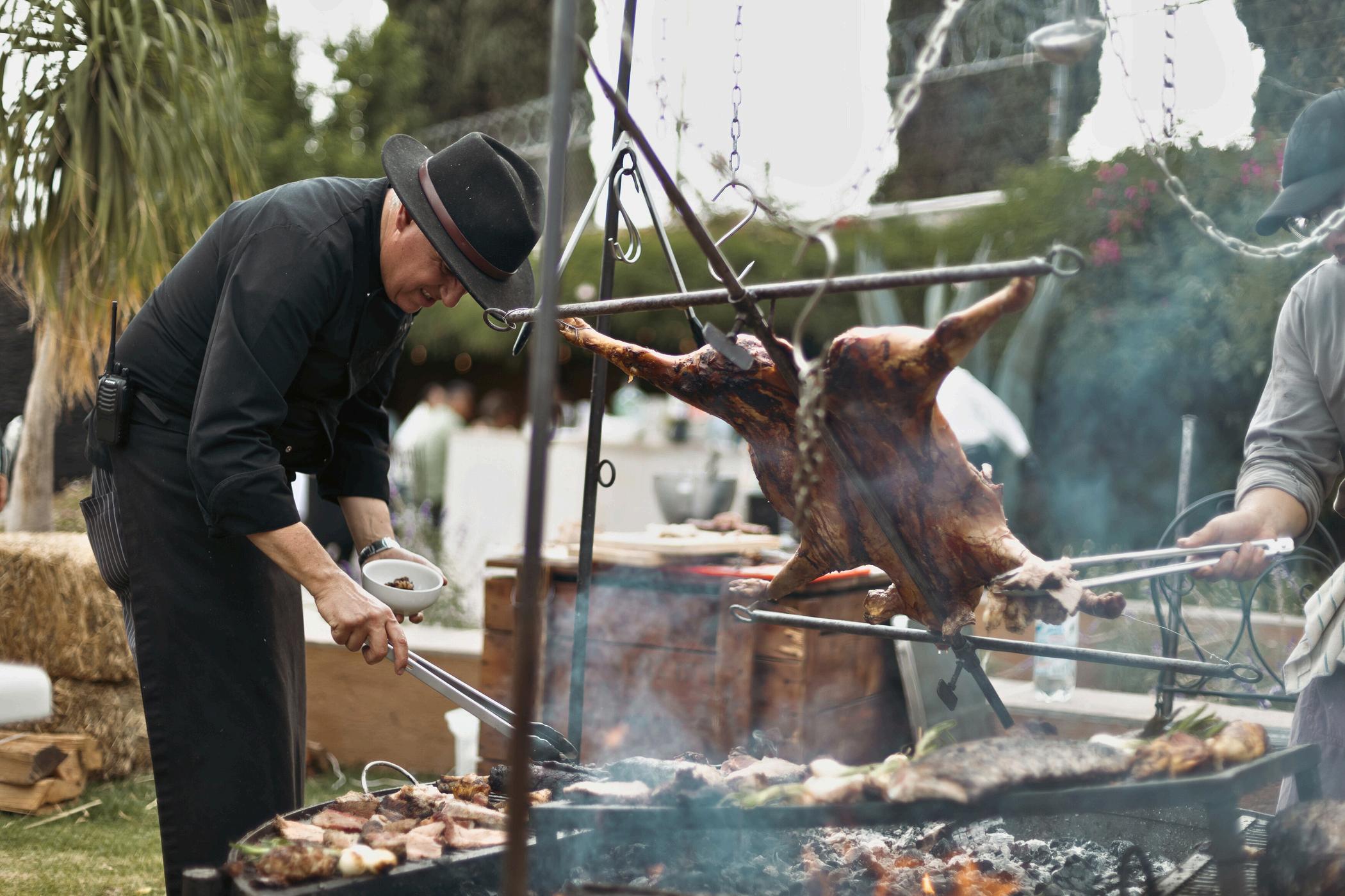 Cortes argentinos* calidad Angus a la leña de encino servidos en tablas al centro de la mesa