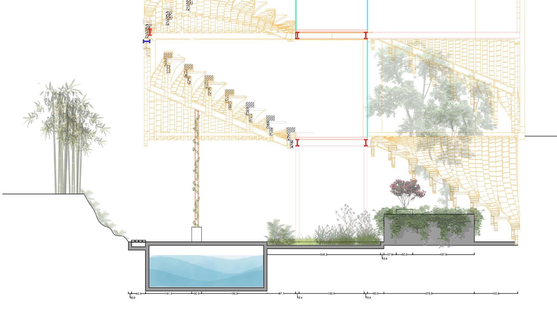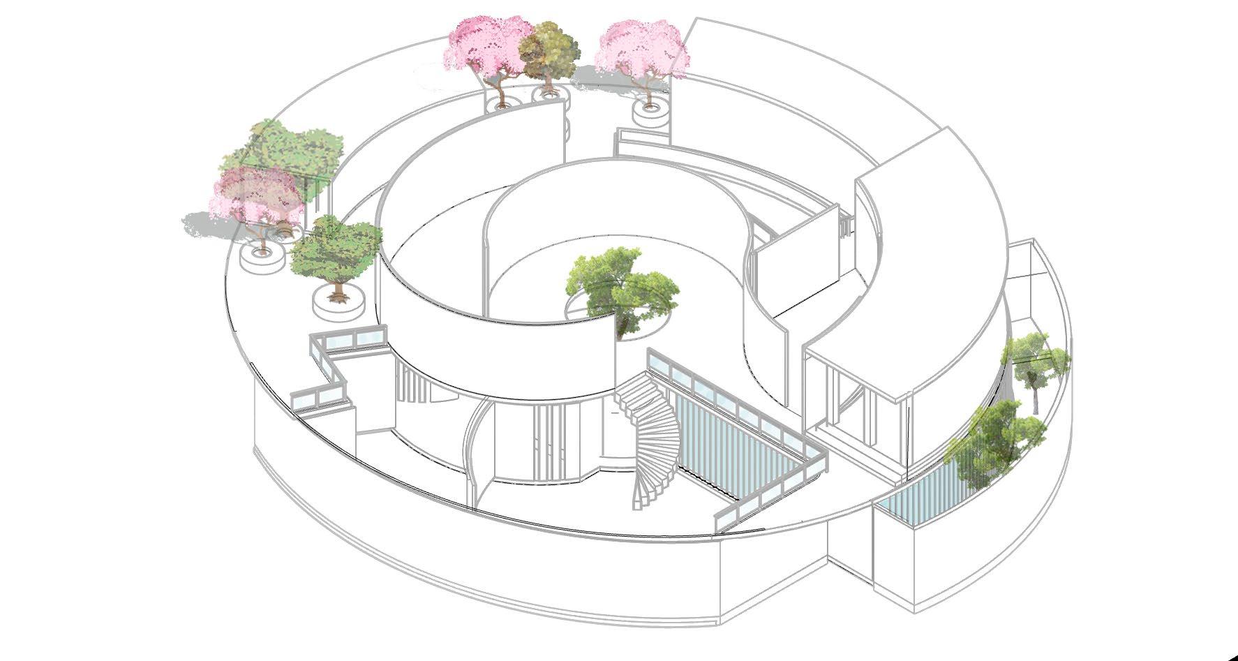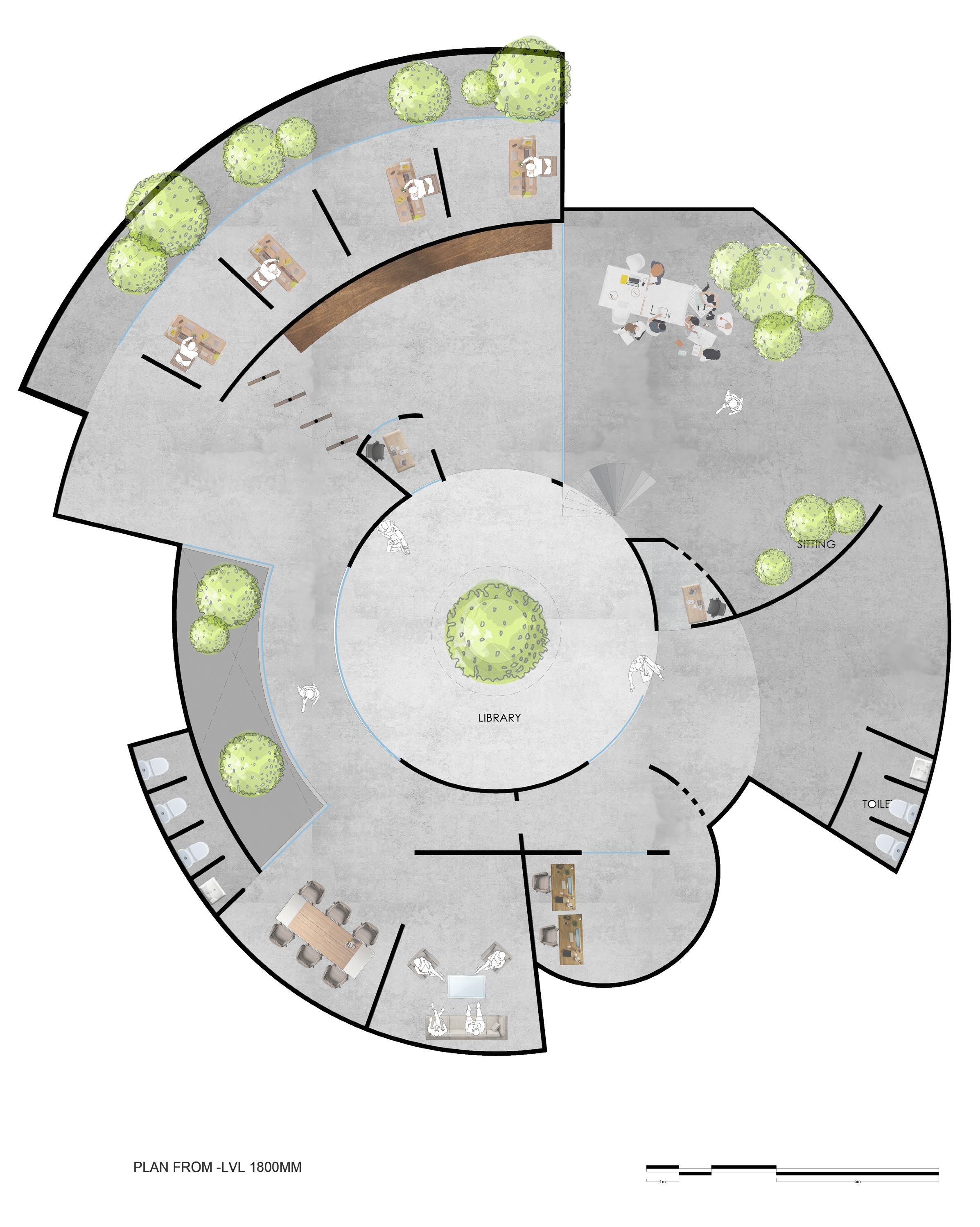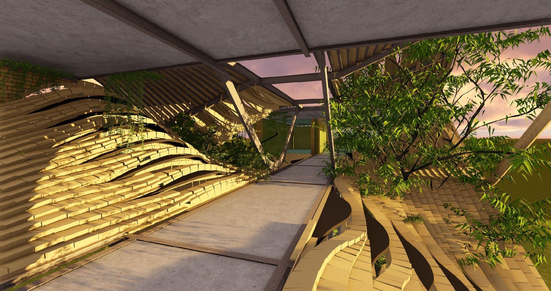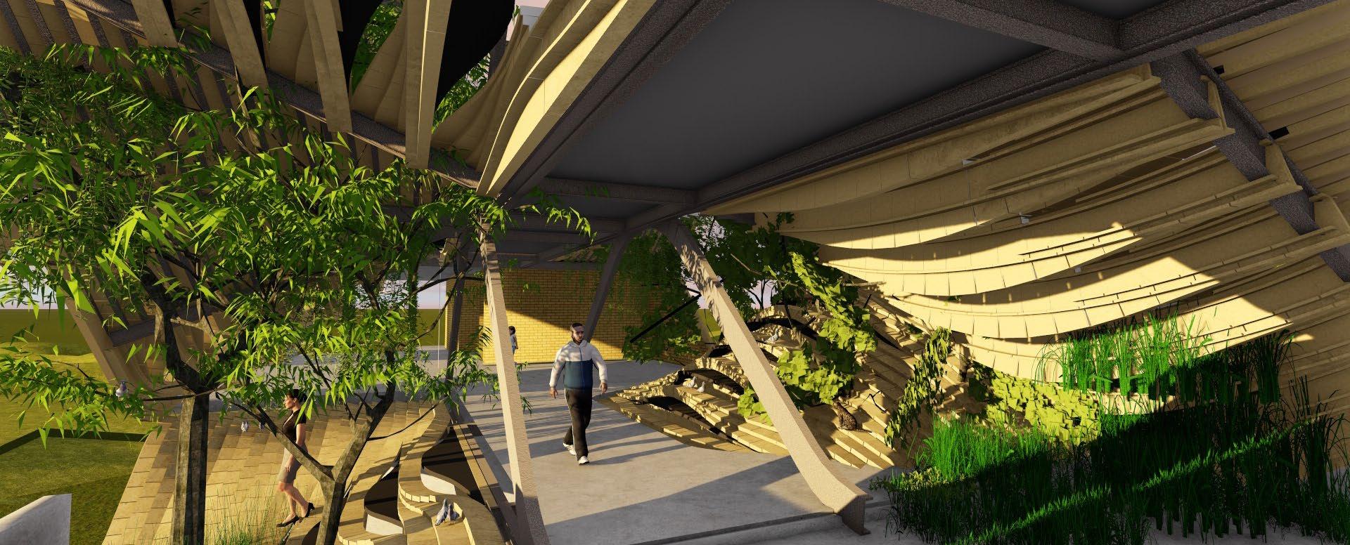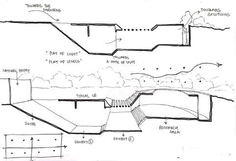 The site is designed to be utilised such way that the fishermen and farming community nearby can be a part of a constructive engagement towards fighting climate change. Spaces have been provided in the landscape to encourages people from all sorts of backgrounds to come together and do plantations and be a part of the change. The form of the building is such that it doesn’t contrast the surroundings and blend in, yet contrasts the urge to build higher in the fight against climate change.