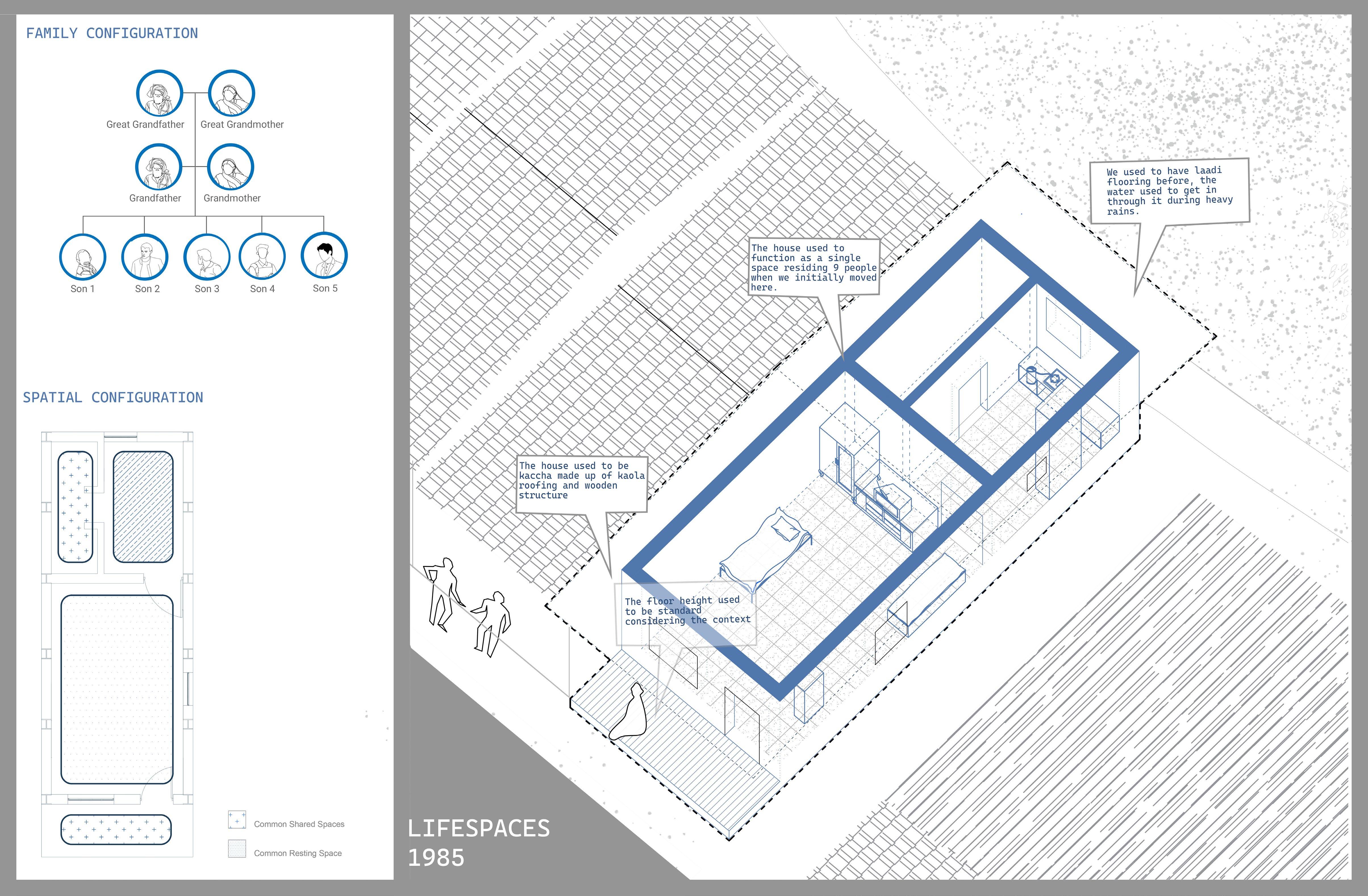Stone has been chosen for the main structure as to withstand any major or minor climatic condition. Locally sourced weathered rock from the site surroundings. And, mud walls for the inner division of spaces.