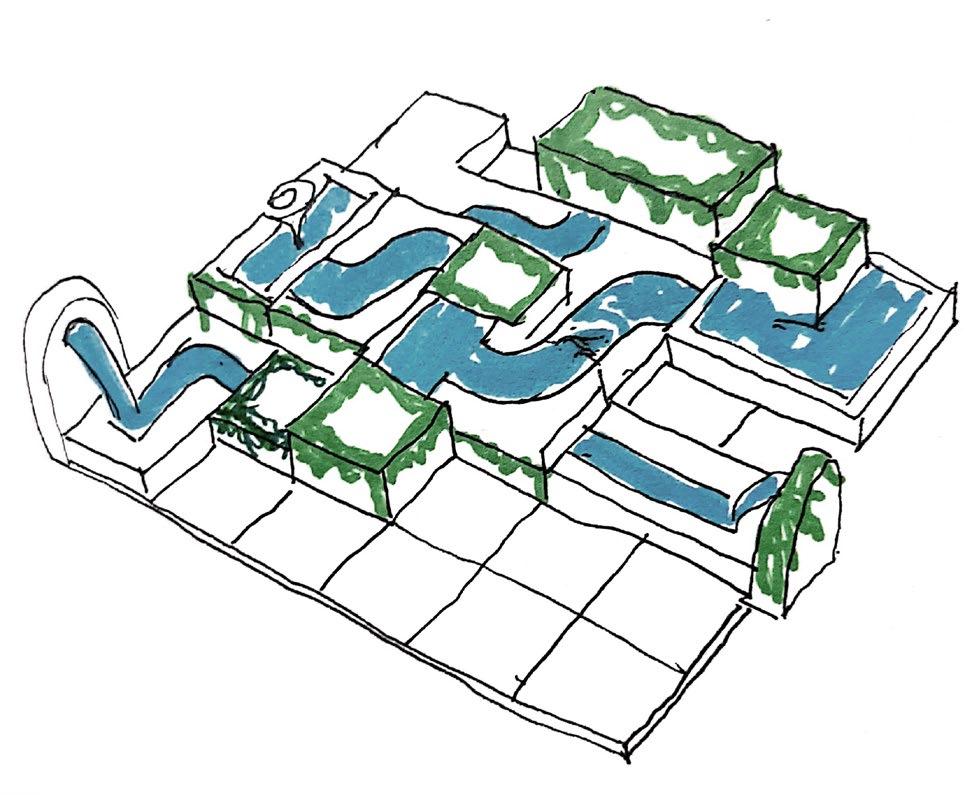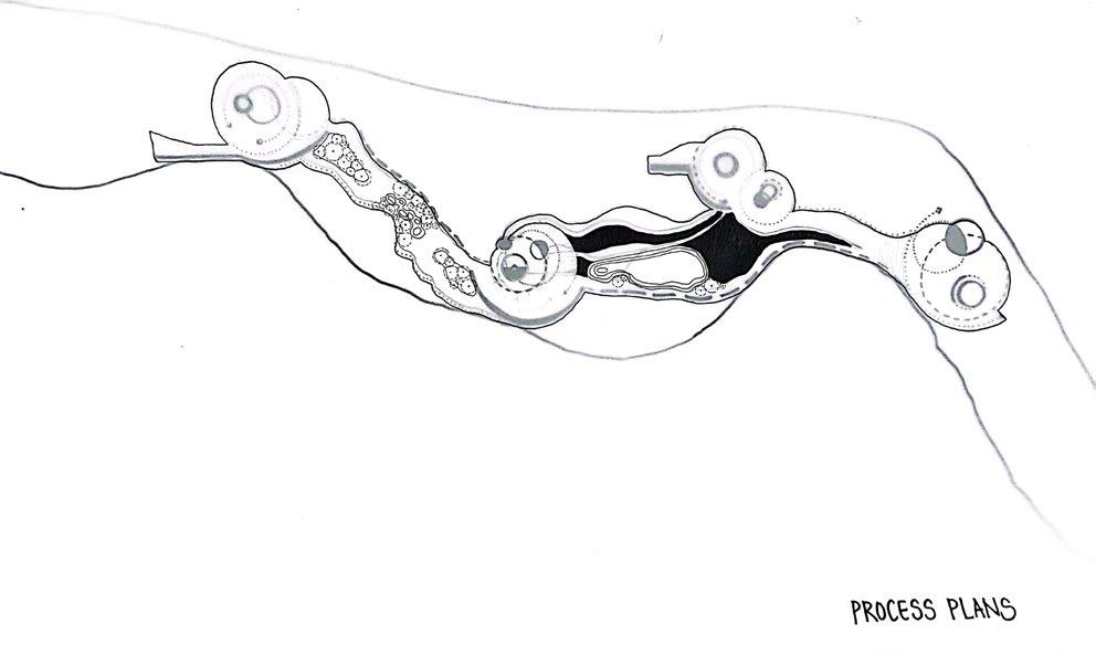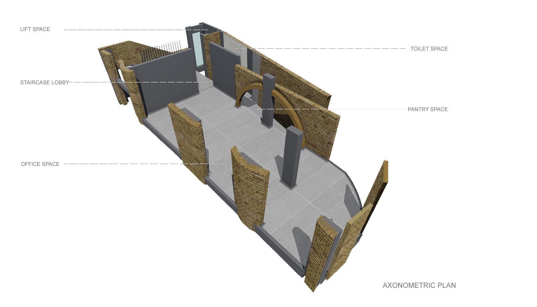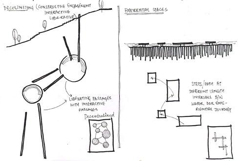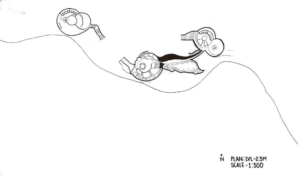 Taking the initial idealogy and the concept into consideration, coming up with a conceptual juxtapose of the two as a diagram. Creating a decentralised and non-hierarchical space, along with the play of levels. Started of with planning the landscape and the materials of the building according to the concept followed by the nature of spaces inside. The plan is ought to be a natural, free flowing journey for the users as to break away from the rigidity. Catering to the main concept, the idea was to not, not build but build consciously.