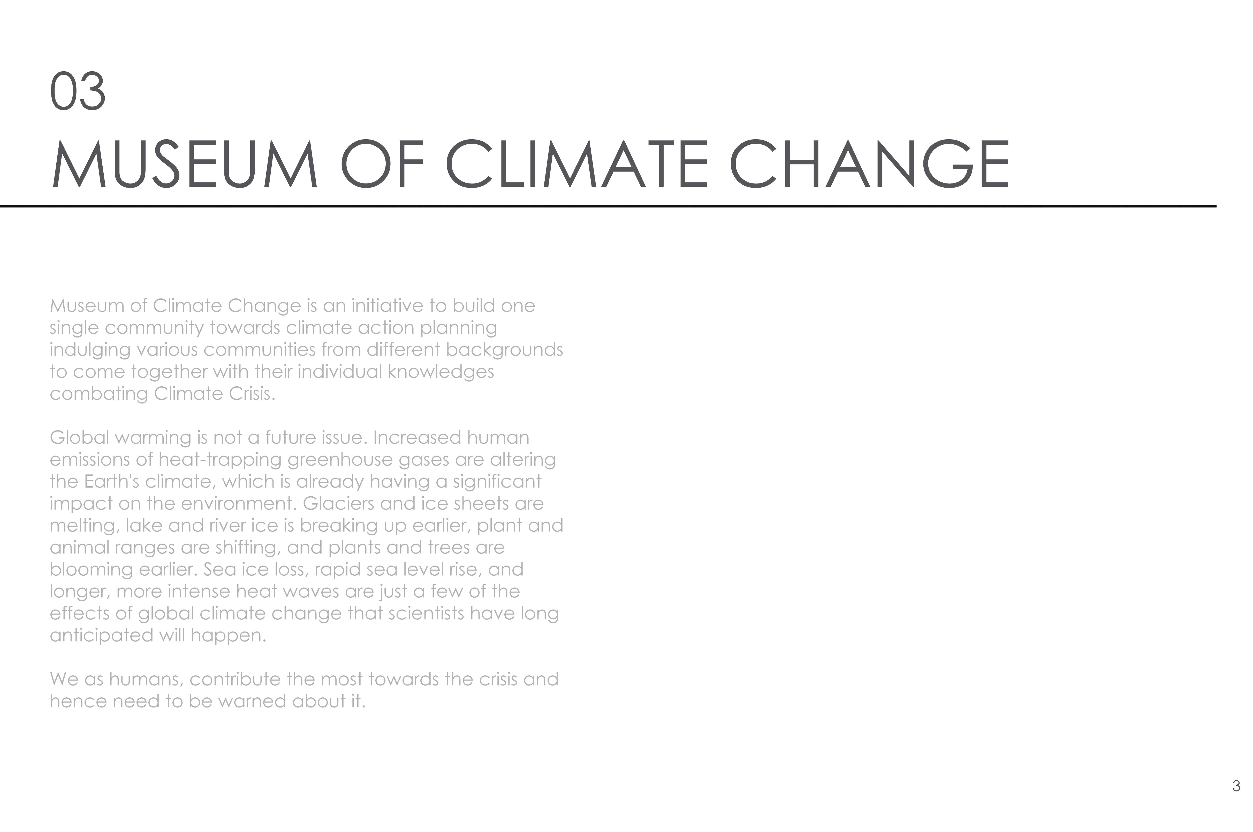 - Giving the user a sense of how climate change has impacted and still impacting us