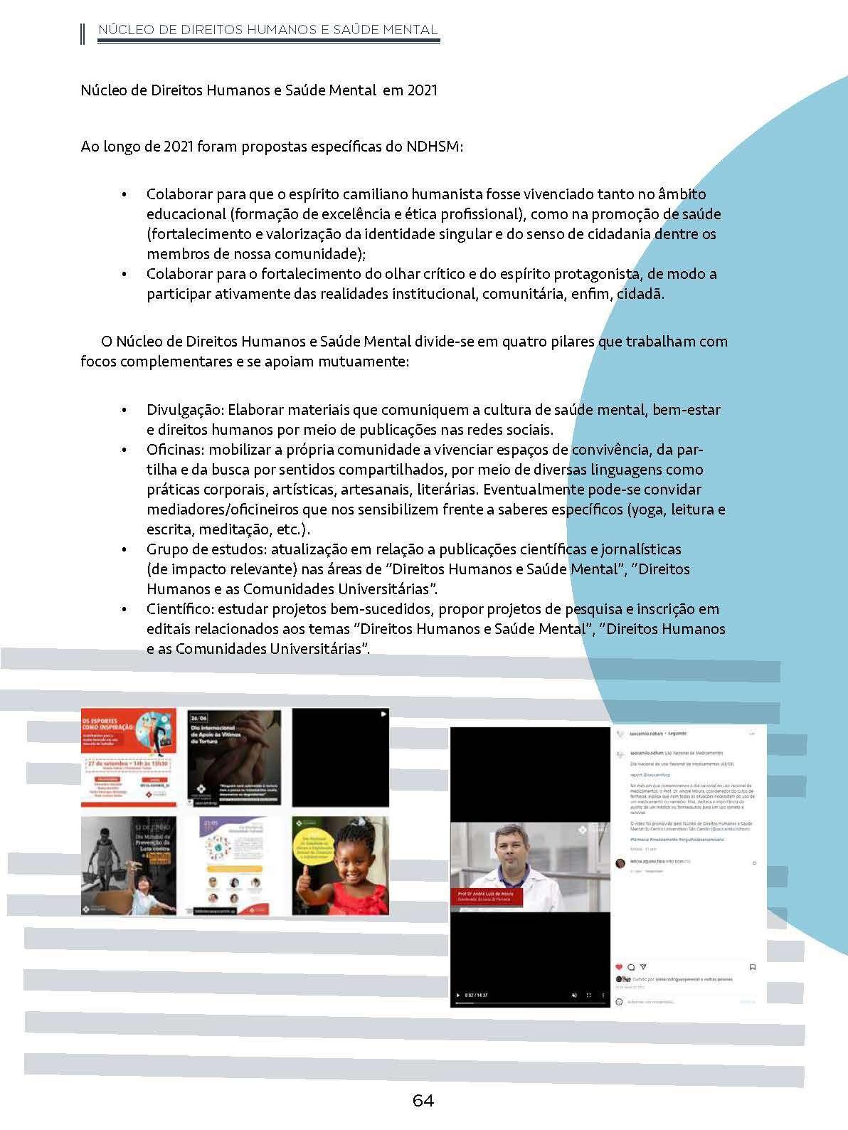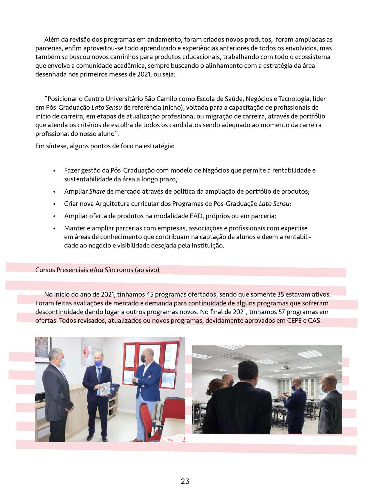 Anuário 2022 - Ano Base 2021 | A publicação reúne indicadores do ensino de graduação e pós-graduação, das atividades de pesquisa e extensão, de cultura, prestação de serviços à comunidade e do quadro de pessoal docente e técnico-administrativo institucional. Em face ao Anuário, o Centro Universitário São Camilo se faz ainda mais notório, acessível e transparente. Boa leitura!