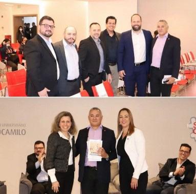 Abaixo, os respectivos representantes das Instituições Colégio São Camilo, PUC/MG e Colégio Santa Maria Minas.