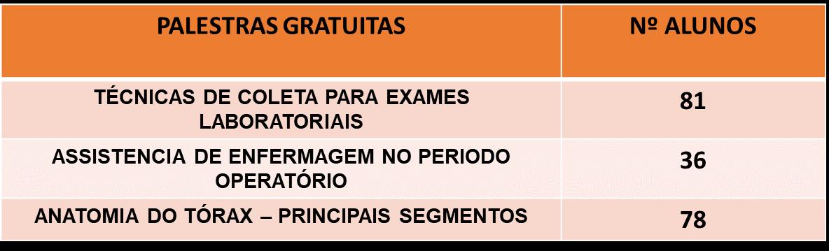 Os eventos e ações pedagógicas mobilizaram todos os alunos e docentes do Colégio, propiciando a realização de ações conjuntas dos cursos Técnico em Enfermagem e Técnico em Radiologia. Principalmente as ações voltadas a datas comemorativas tiveram a ampla participação e engajamento de toda equipe pedagógica e administrativa do Colégio.