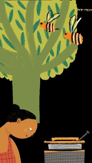 Um exemplo está no conto Dourado e doce em que o ilustrador traz a dualidade entre a cor do mel e a do ouro. Notem o desenho das mãos apertando o favo de mel, ele remete ao movimento de extração de uma pepita de ouro, e as duas atividades estão presentes na trajetória do entrevistado Luiz Pereira Rodrigues.