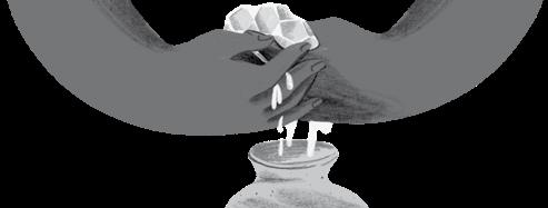 Página 23: “Como bom nordestino, seu Benedito seguia a tradição: mel não podia faltar. Muito menos na Semana Santa. Na mesa, o costume era servir galinha, ovo, carne de porco ou bode. Peixe era raro, dificilmente se pegava uma trairinha num córrego. Junto com a proteína, completavam o prato arroz e feijão, um feijão com abóbora, bem temperado com manteiga de leite, aquela manteiga da nata da coalhada.”
