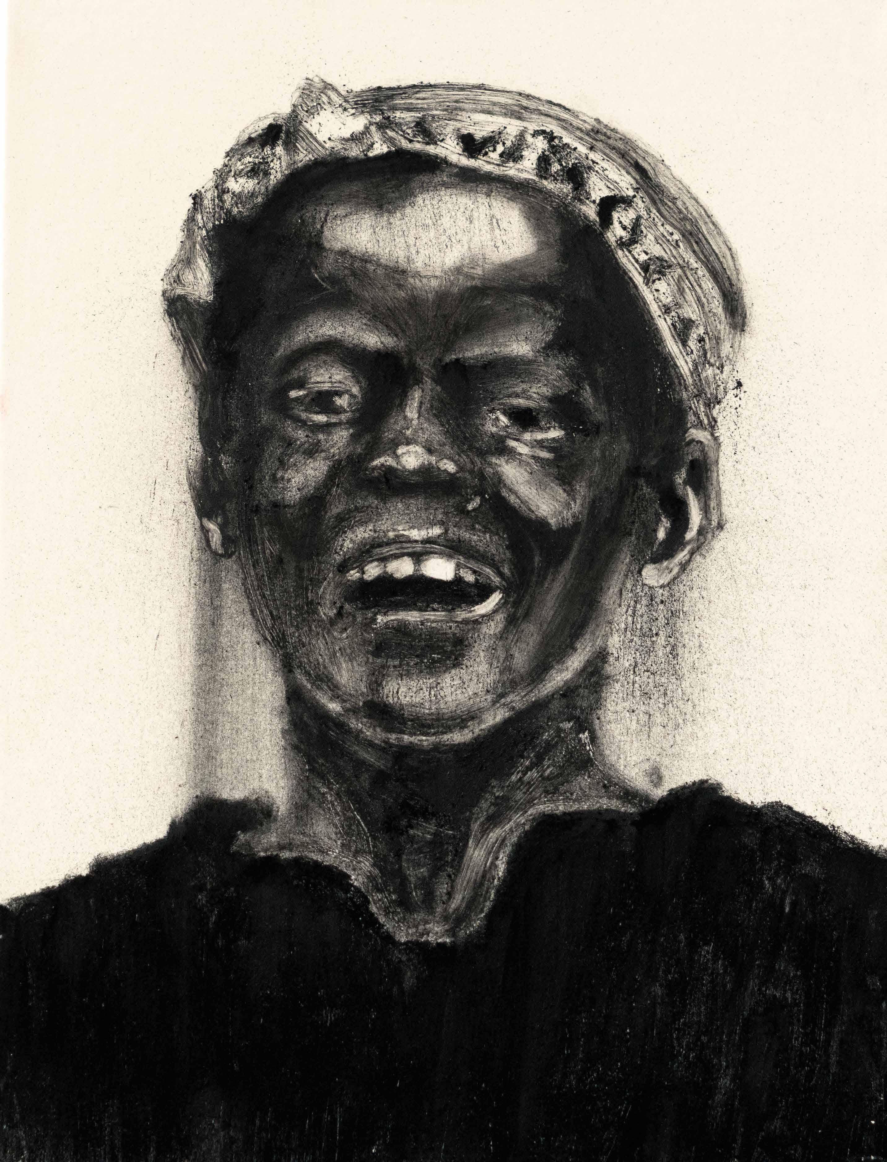 O material que Obá escolhe para desenhar as crianças não é um acaso: ao retratá-las com carvão, o artista alude à madeira queimada, que ganha outra forma de vida ao virar imagem sobre o papel.
