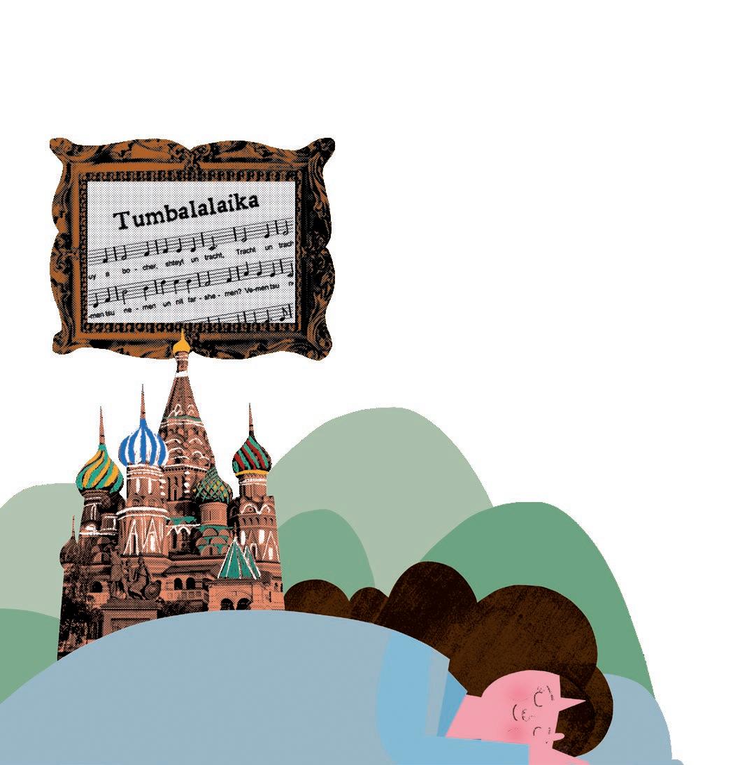Tumbalalaica, uma das cantigas mais lembradas da tradição judaica russa, tem como tema um instrumento musical de corpo triangular e apenas três cordas, mas para mim parece um parente do violão. As balalaicas variam de tamanho: as menores medem uns 60cm, mas as grandonas podem ter 1,70m de comprimento, mais altas do que eu!