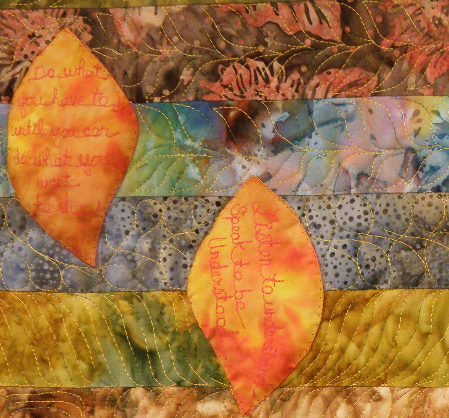 hand dyed and painted Fabric, free-motion quilting with metallic and rayon thread.