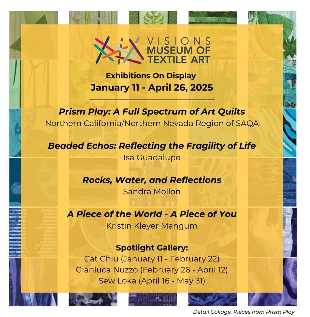 We look forward to seeing you at one of our events and welcoming you into the heart of SAQA, where meaningful connections are always waiting to be made. ■