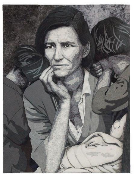Asked if she does other kinds of quilting besides portraits, she laughingly says her last piece was a truck! That piece was part of a commissioned landscape, which is something she also does to stretch herself.