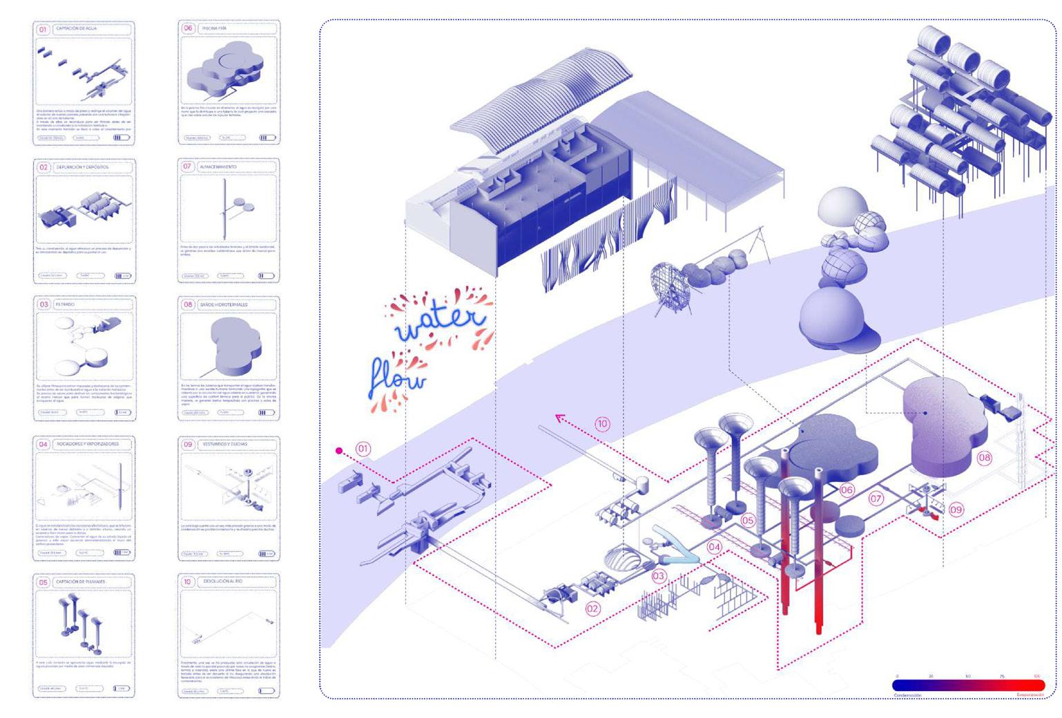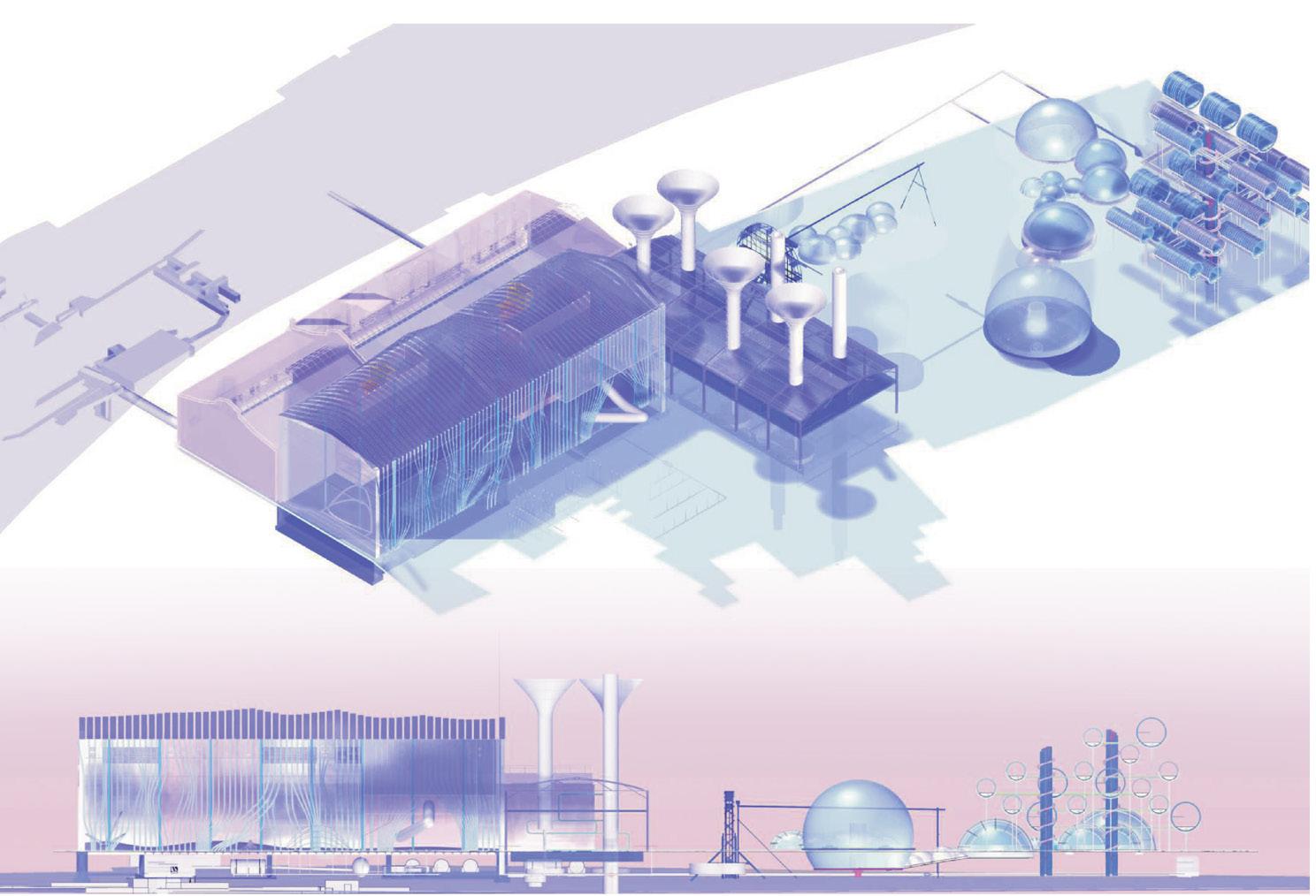 Can a carbon-dependent power plant be transformed into a water ecosystem? In this project, water will be the material for the creation of spaces, participating directly or indirectly in the development of programme activities and the creation of environments.