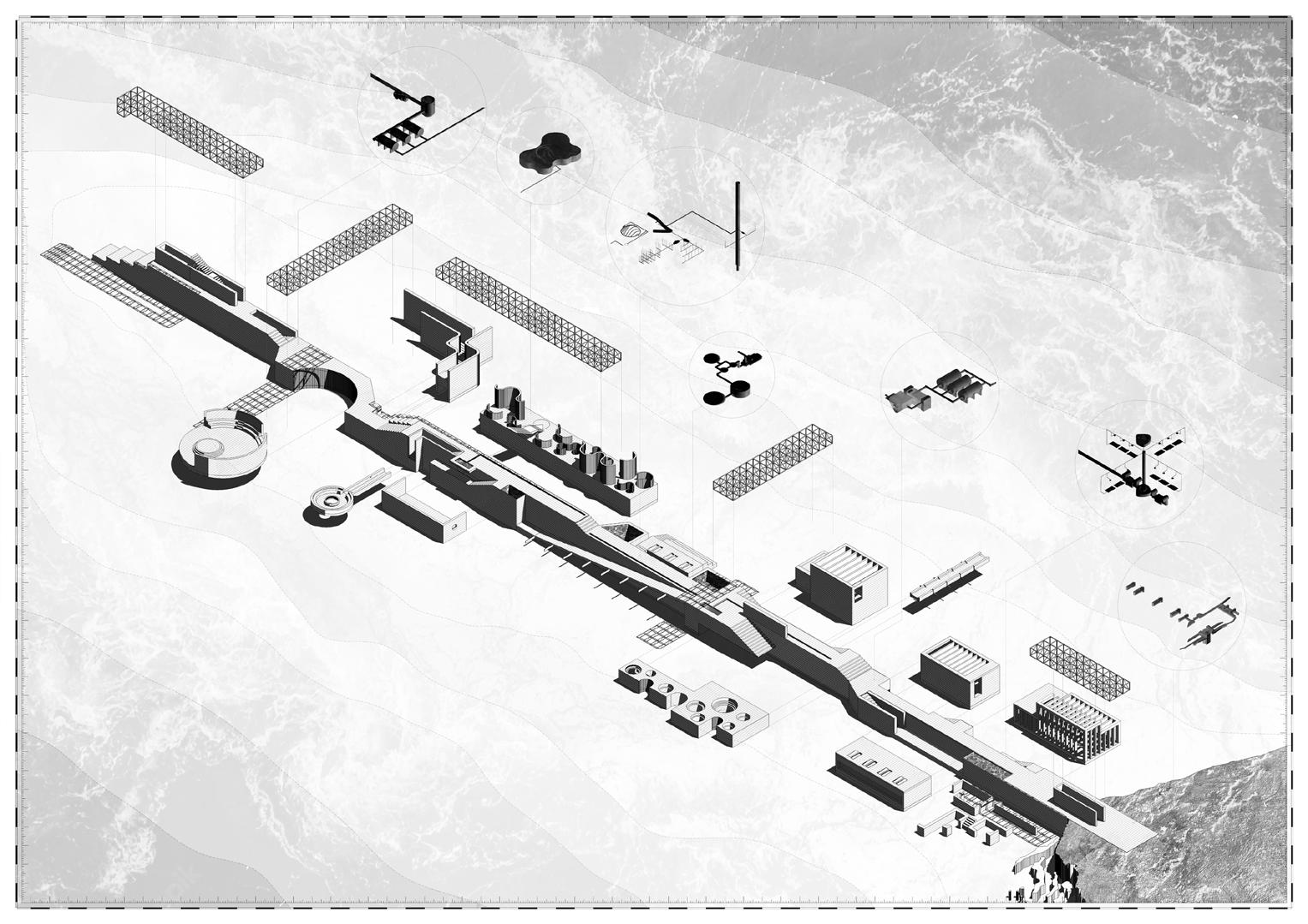 Can the new ecological paradigm rethink the traditional water cycle to manufacture a new architecture? This project aims to imagine what the post-carbon era scenario would look like.