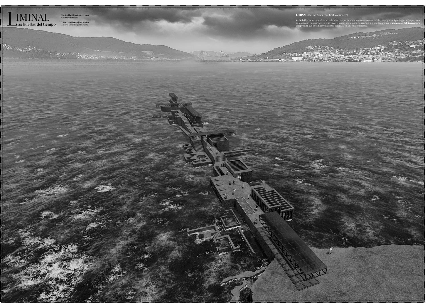 The aim is to transfer the agents that transform the coast of Vigo to each scene of the breakwater. Such as the fog, erosion, the calm of the sea, the waves... The low and high tide activates and deactivates the programmes. These events aim to recover Vigo’s identity.