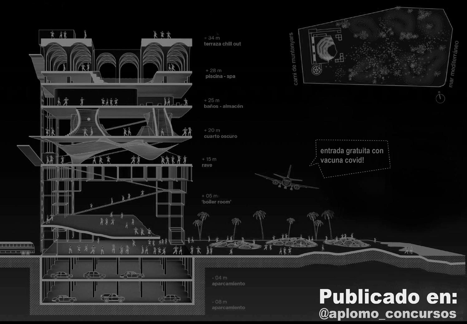Panoramix got the shot! The panoramic visual component gives the project its name. The discotheque is born from the memory of the Bakalao route. The idea is to incorporate elements that built the context of the route. To do this, an integral landscape intervention is pursued between: the coast, the lagoon and the culture of the party.