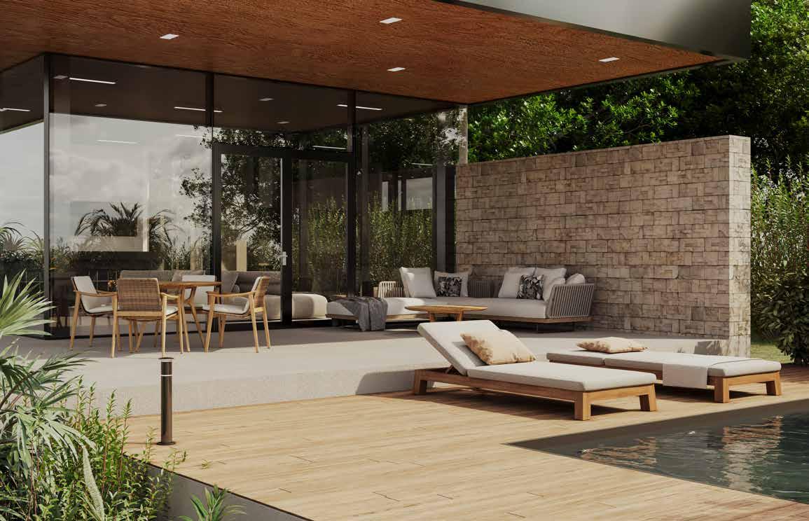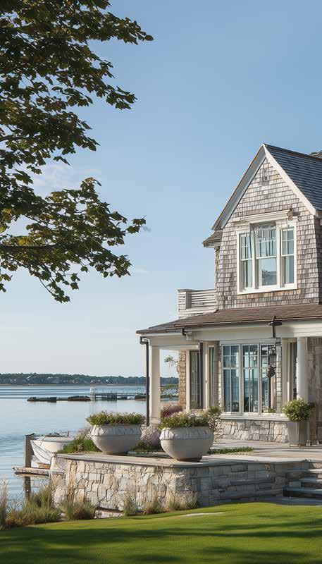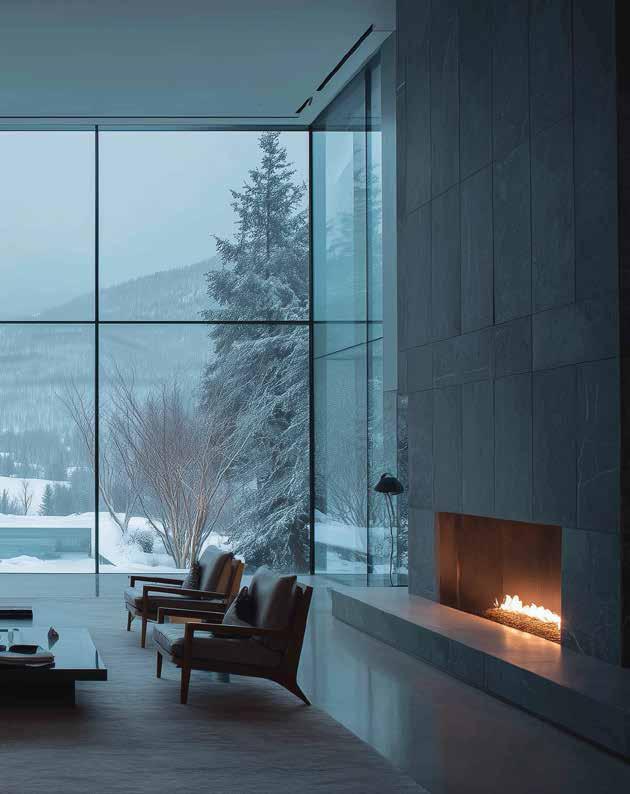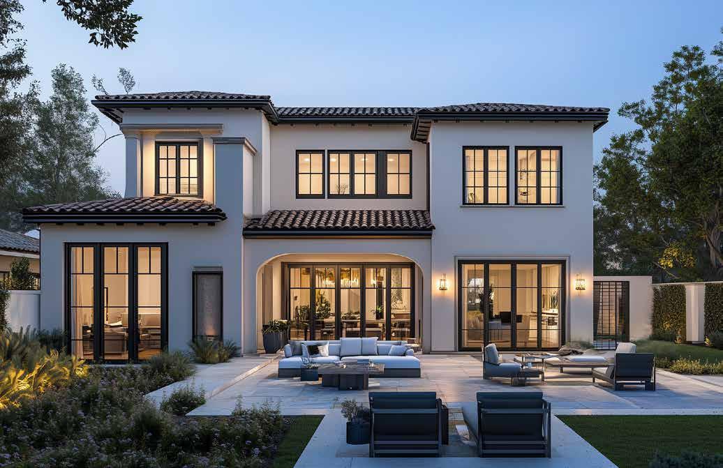 Burrell is seeing these shifts frsthand in his Naperville/Chicago market. Health-focused layouts, seamless indoor-outdoor living, and energy-efcient systems like solar, geothermal, and EV charging are rising to the top of his clients’ wish lists. “Flexible spaces that support remote work and multi-generational living are in high demand,” he says. “Technology integration has become a baseline expectation. Buyer demographics are shifting — older downsizers want low-maintenance elegance, while younger afuent buyers favor clean, modern design and authenticity over formality. Outdoor amenities such as pools, kitchens, fre features, and private recreation areas are increasingly essential.”