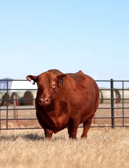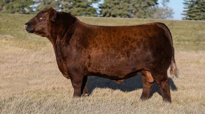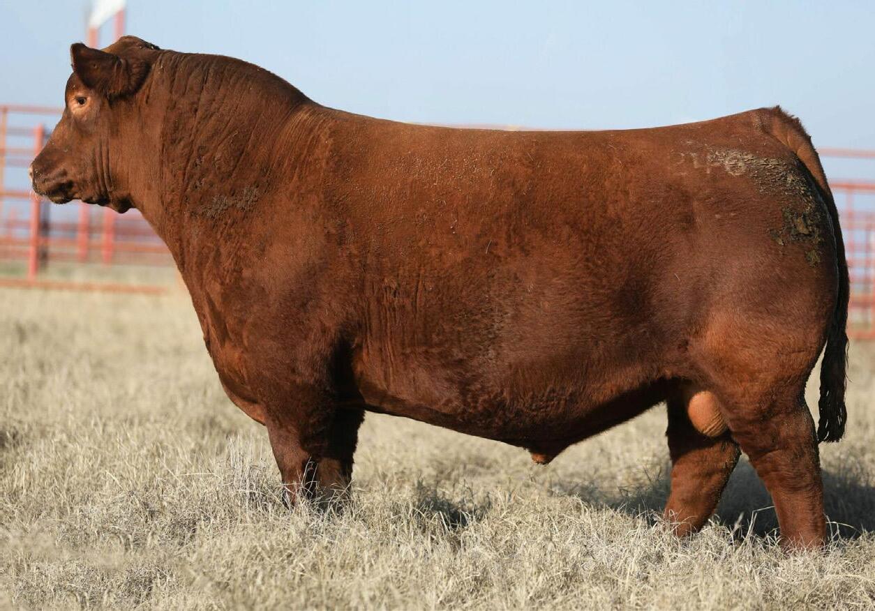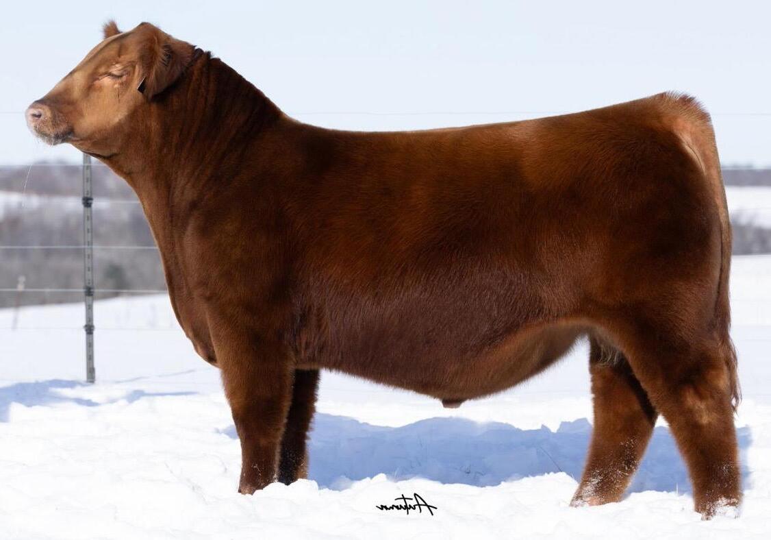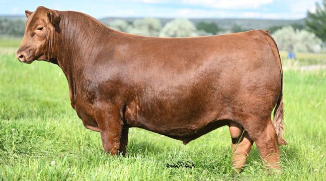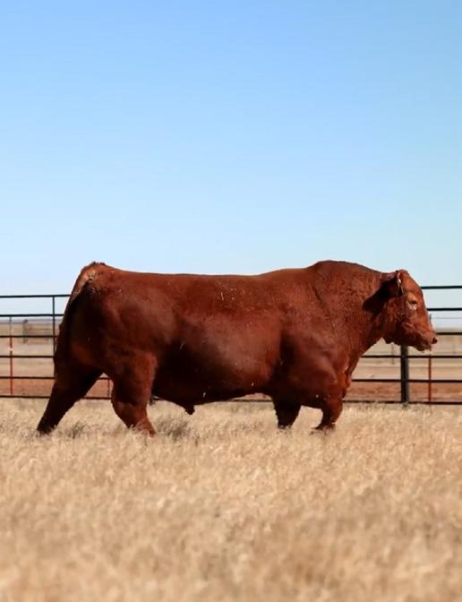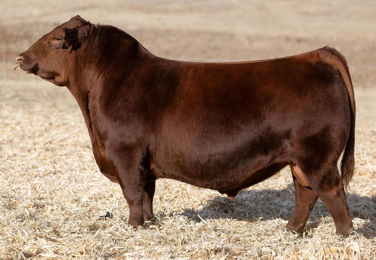Proven heifer bull! Top selling Red Angus sire at the 2022 Power Plus Bull for $150,000. With an actual BW of 65 pounds, HD’s progeny have elite style, muscle, rib shapeand stand on perfect feet with a flawless structure. 2046 is a remarkable specimen with his own distinctive style. He moves effortlessly, with his head held high, and boasts a long, level hip, pronounced stifle, sound structure, and a commanding presence.HD’s dam, 15522, is equally extraordinary. Despite breaking her back leg in a gopher hole while nursing her second calf, she recovered and bred back successfully. Her heifer calf, Rita, was a highlight of our 2019 Holiday Sale. Quality and style are deeply rooted in this lineage, and we are confident that HD 2046 will have a lasting influence on the Red Angus breed and beyond.
