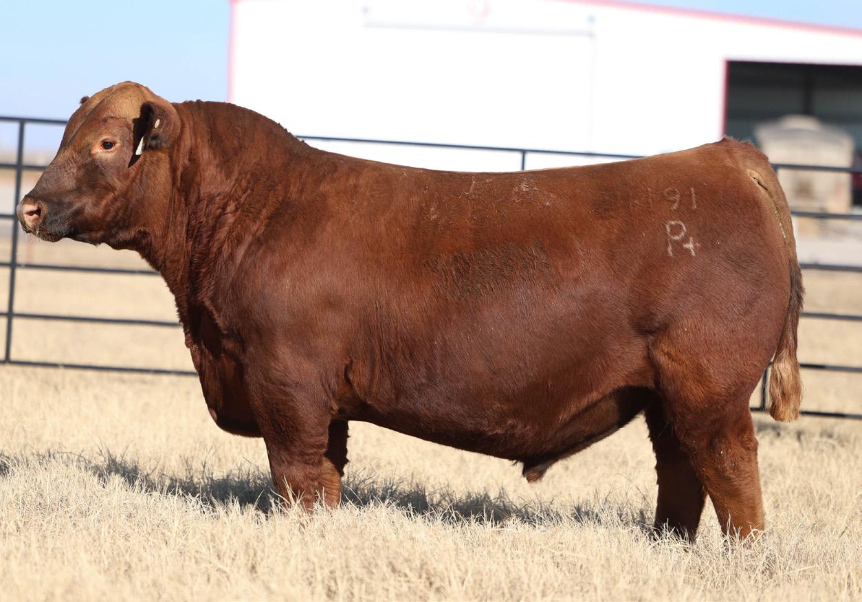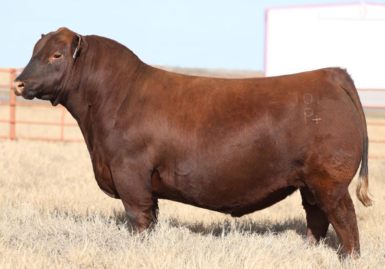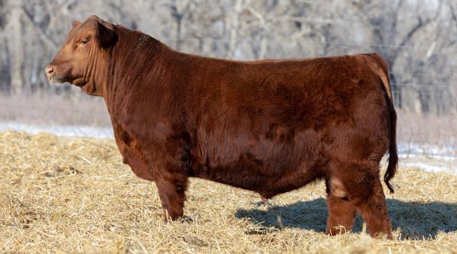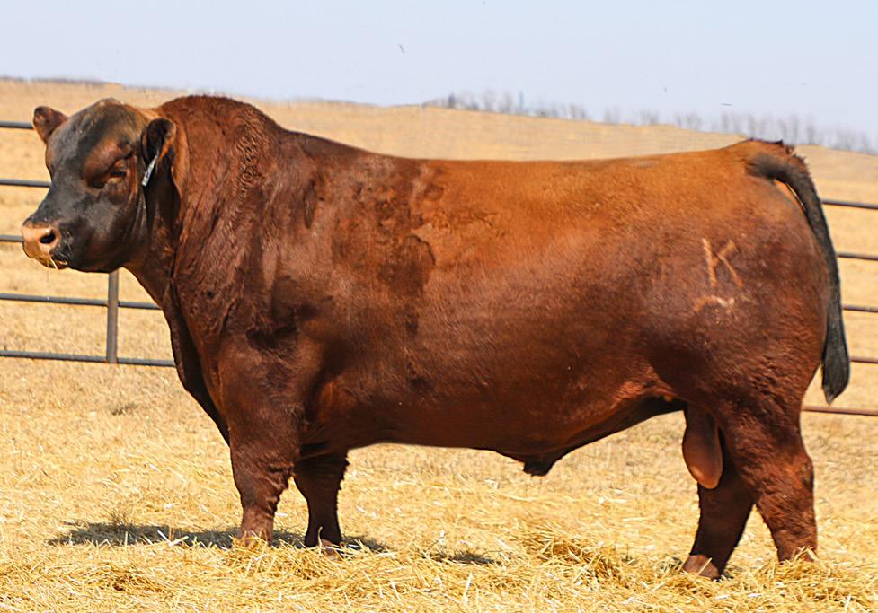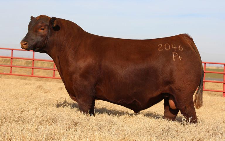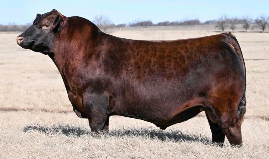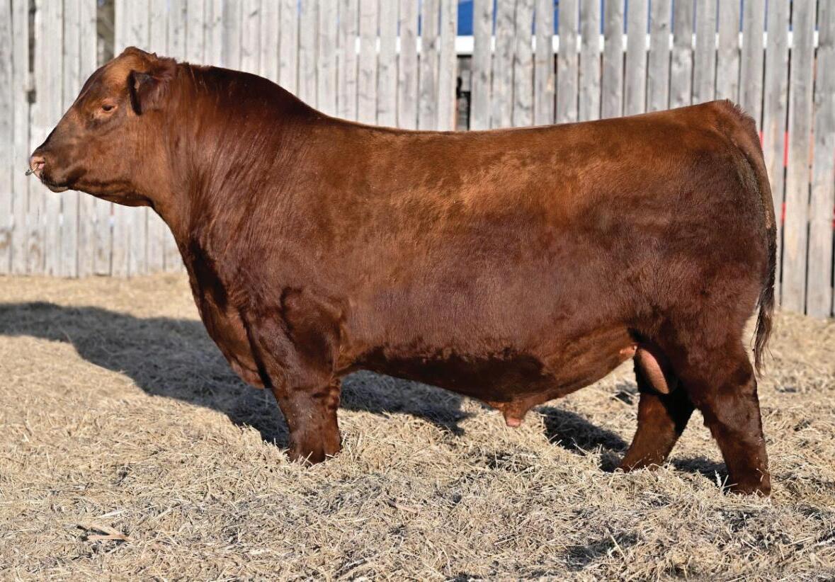Proven heifer bull! Top selling Red Angus sire at the 2022 Power Plus Bull for $150,000. With an actual BW of 65 pounds, HD’s progeny have elite style, muscle, rib shapeand stand on perfect feet with a flawless structure. 2046 is a remarkable specimen with his own distinctive style. He moves effortlessly, with his head held high, and boasts a long, level hip, pronounced stifle, sound structure, and a commanding presence.HD’s dam, 15522, is equally extraordinary. Despite breaking her back leg in a gopher hole while nursing her second calf, she recovered and bred back successfully. Her heifer calf, Rita, was a highlight of our 2019 Holiday Sale. Quality and style are deeply rooted in this lineage, and we are confident that HD 2046 will have a lasting influence on the Red Angus breed and beyond.