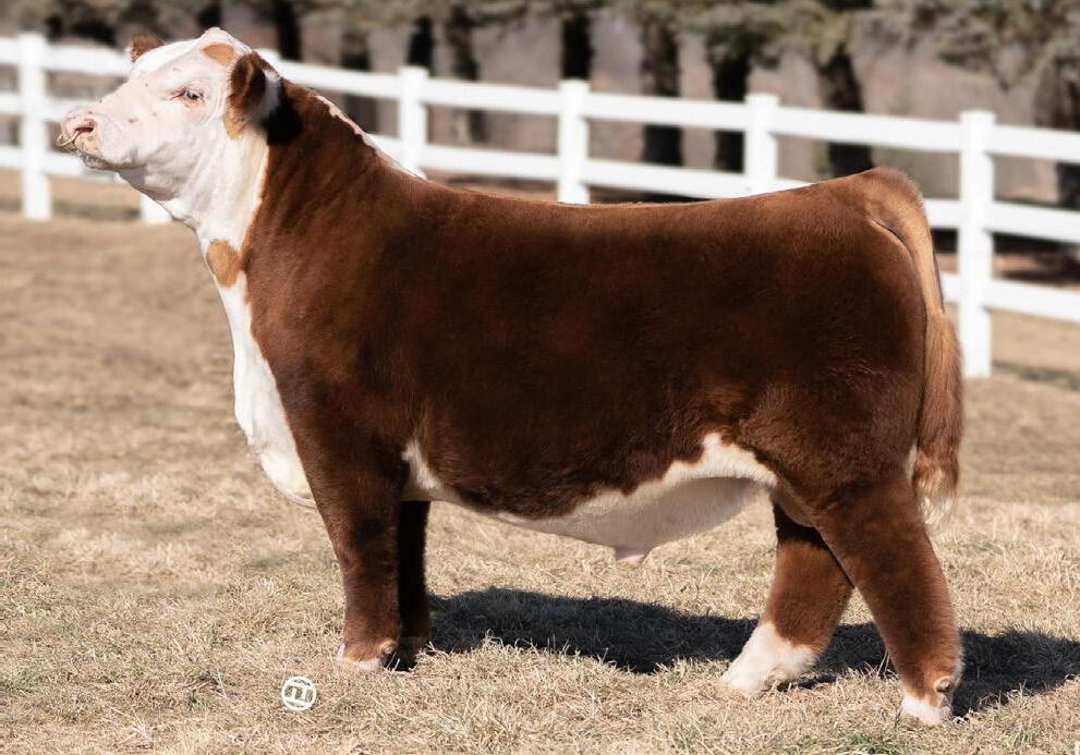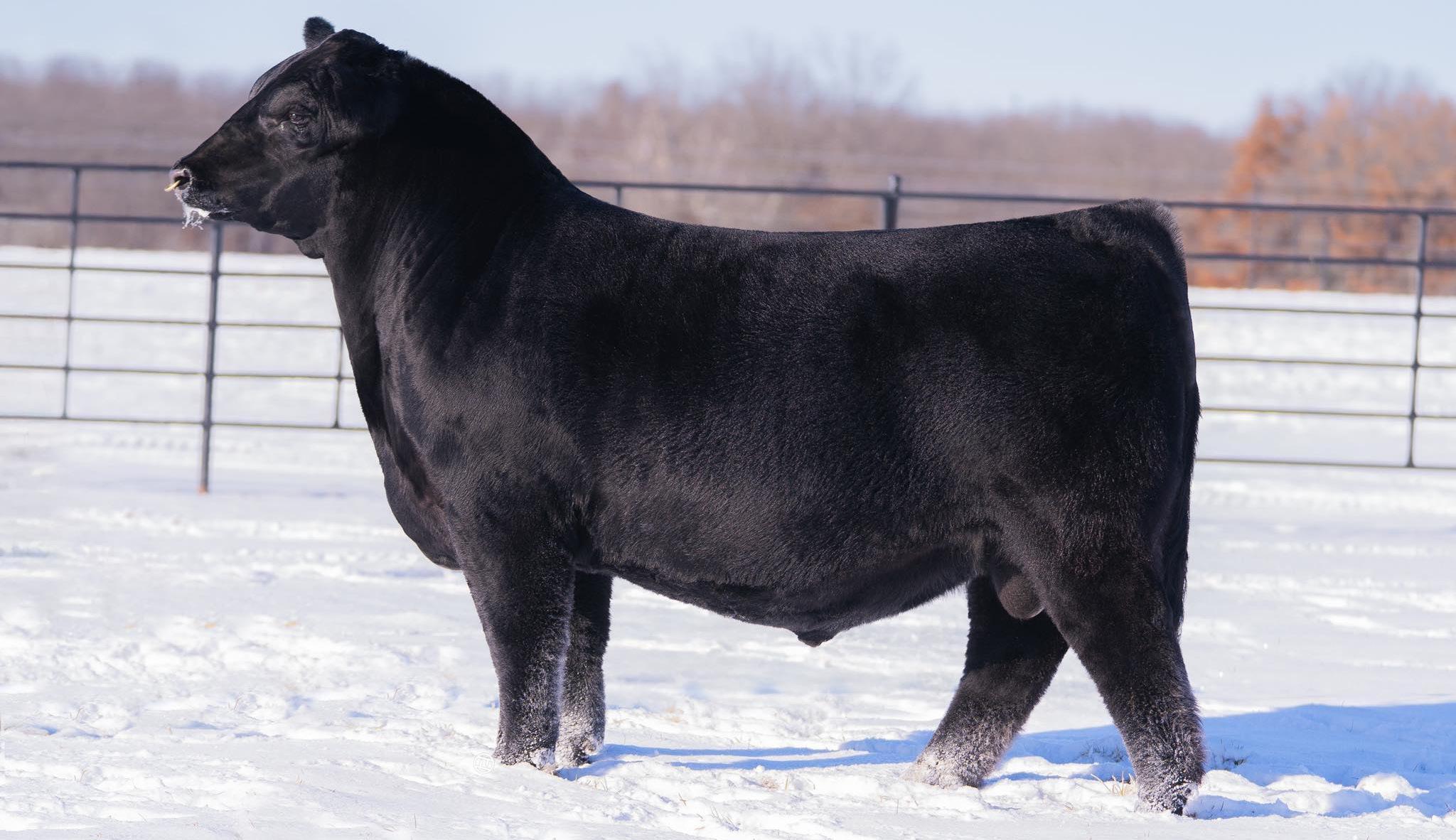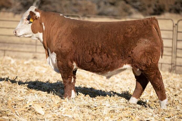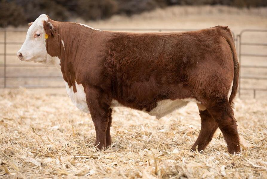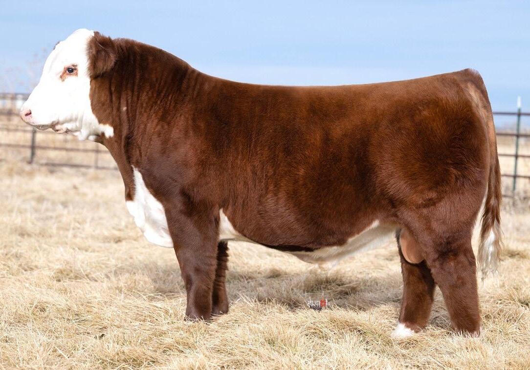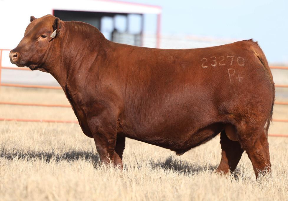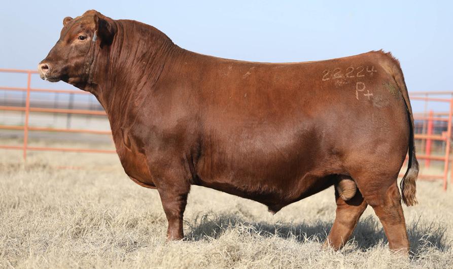 Proven heifer bull! Top selling Red Angus sire at the 2022 Power Plus Bull for $150,000. With an actual BW of 65 pounds, HD’s progeny have elite style, muscle, rib shapeand stand on perfect feet with a flawless structure. 2046 is a remarkable specimen with his own distinctive style. He moves effortlessly, with his head held high, and boasts a long, level hip, pronounced stifle, sound structure, and a commanding presence.HD’s dam, 15522, is equally extraordinary. Despite breaking her back leg in a gopher hole while nursing her second calf, she recovered and bred back successfully. Her heifer calf, Rita, was a highlight of our 2019 Holiday Sale. Quality and style are deeply rooted in this lineage, and we are confident that HD 2046 will have a lasting influence on the Red Angus breed and beyond.