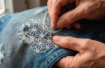 Ar y cwrs creadigol undydd hwn byddwch yn darganfod sut y gall brodwaith a thrwsio dillad drawsnewid eich dillad mewn ffyrdd hardd ac ymarferol. Byddwch chi'n rhoi cynnig ar bedwar techneg wahanol a fydd yn eich helpu i drwsio, addurno a phersonoli'ch dillad. Yn y bore cewch gyfle i roi cynnig ar batrymau cadwyn a sashiko wedi'u pwytho â llaw gydag edafedd lliwgar, neu arbrofi gyda gwnïo rhydd ac apliqué i wneud i'ch gwaith trwsio sefyll allan. Yn y prynhawn byddwch yn canolbwyntio ar eich dilledyn eich hun ac yn datblygu eich hoff dechneg gyda chefnogaeth gan y tiwtor. Mae hon yn ffordd wych o feithrin eich sgiliau trwsio dillad creadigol a gall agor y drws i ddysgu pellach, fel y cwrs Ymarfer Portffolio Celf a Dylunio Lefel 3 gydag Ehangu Mynediad.