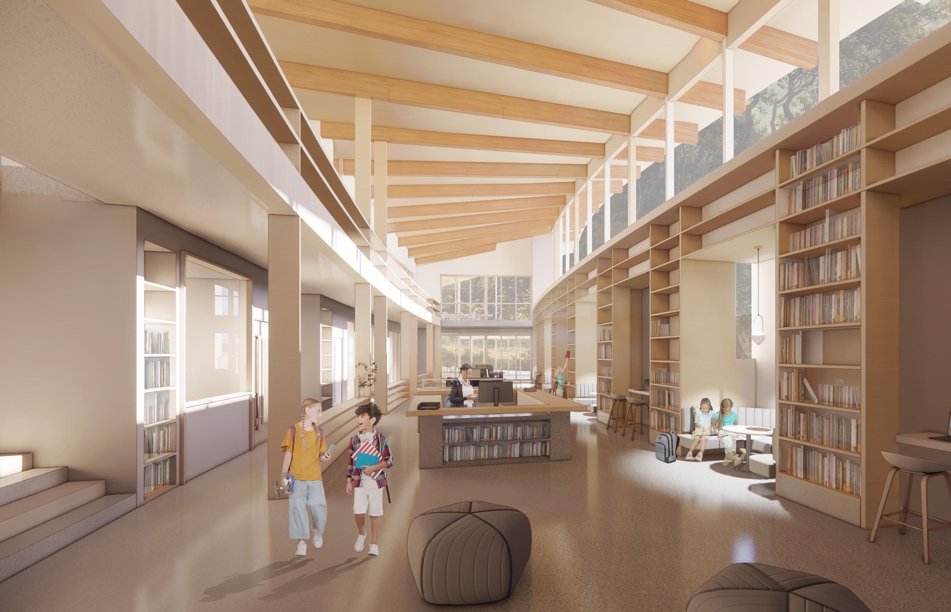 The proposed environmental education center for fifth and sixth-grade students, located between Walker Upper Elementary and Greenleaf Park, fosters environmental awareness and community engagement for the Upper Elementary students and the greater Charlottesville community. The distinctive funnel shape directs visitors from the elementary parking lot through a central social space, over the creek, and toward the Rivanna River Trails. Its undulating walls offer a unique spatial experience, acting as a buffer against the nearby highway for a serene and safe learning environment. The education center is divided into two bars, housing classrooms and featuring open learning spaces.