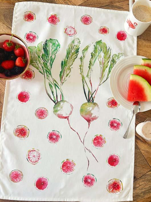 Astunningcollectionoftea towels,eachadornedwith vibrant,nature-inspireddesigns originallyhand-paintedin watercolours.