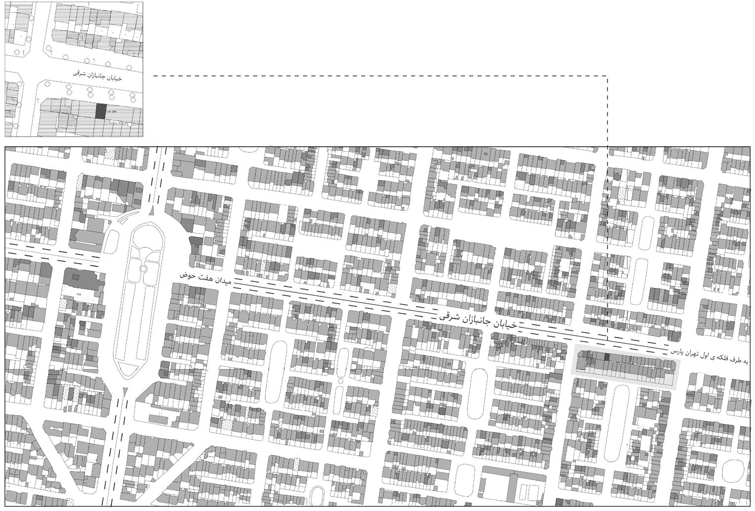 The project is located in Zhanbazan Street, District 8, Tehran. A street with a length of about 2 kilometers with a generally commercial activity and a very chaotic cityscape