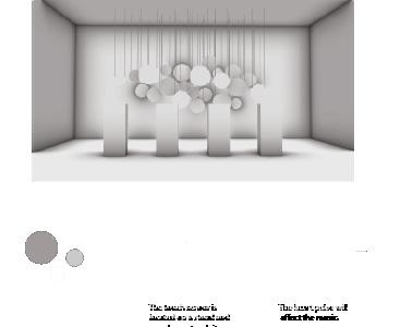 The selected proposal is the cloud as a social instrument. This installaion includes several suspended circle that can glow. There are 4 stands with the sensors upon them.Each of the stands relates to several circle