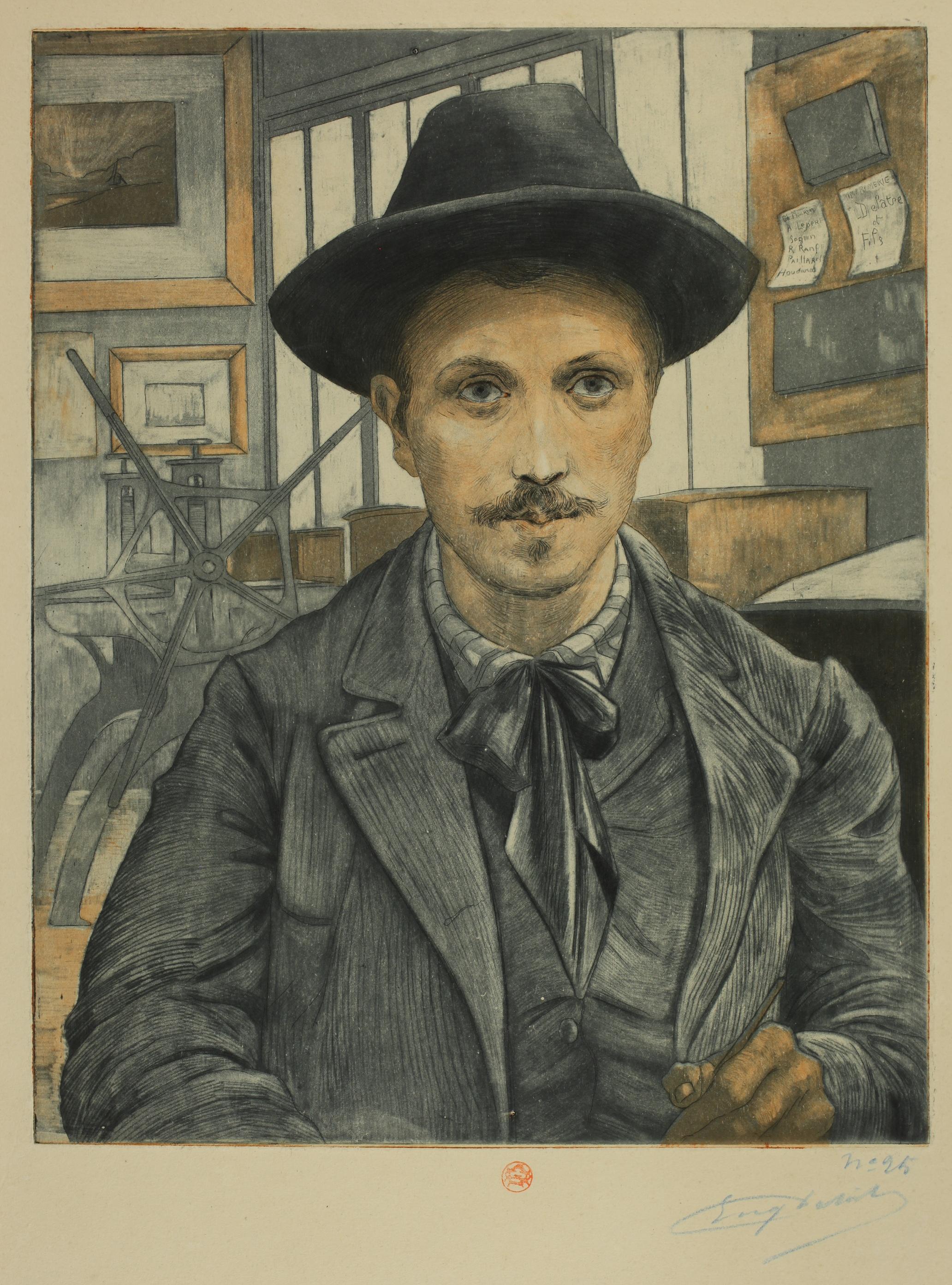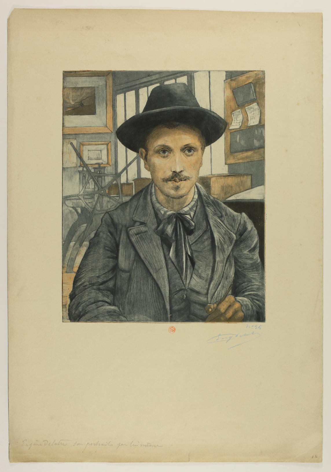 Très belle épreuve imprimée sur papier vélin, signée et numérotée n°25 au crayon bleu. Porte dans la marge en pied le tampon rouge d’Eugène Delâtre (Lugt 742) et en bas à gauche l’annotation au crayon Eugène Delâtre son portrait par lui-même. Très rare : tirage à 30 épreuves.