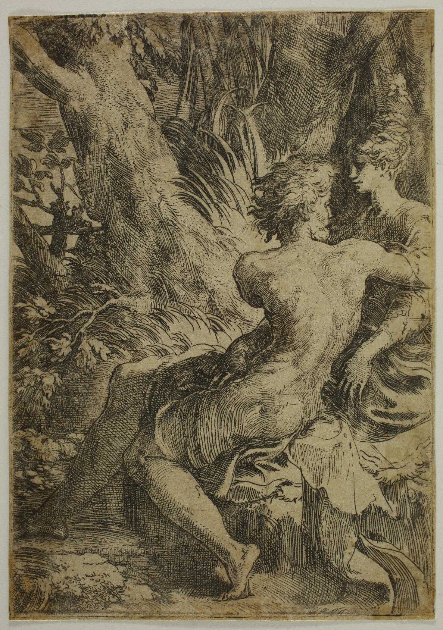 « Illustrant la maîtrise totale de la technique de l’eau-forte par Parmigianino, cette estampe présente les mariages complexes de hachures et de lignes fines et souples dont il s’est servi pour cerner les élégantes figures et le vibrant paysage qui les entoure. » (Catherine Jenkins, p. 138).