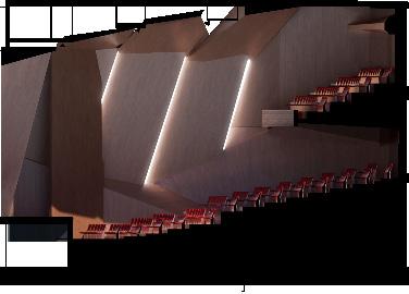 The Redlands Performing Arts Center embodies the inner dynamism of Redlands and uses the performing arts as a precedent to represent the active art form in an architectural language.