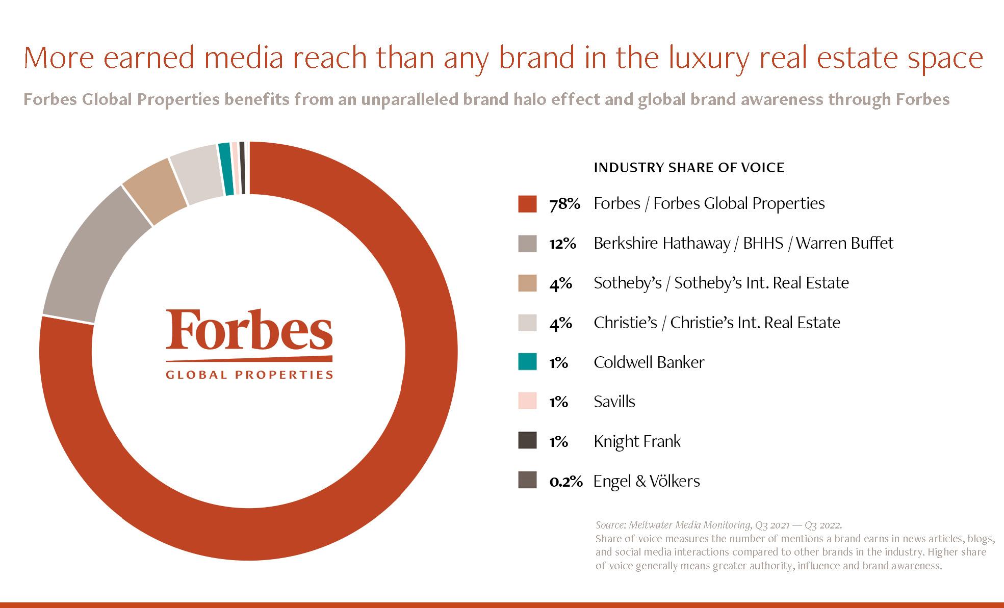 An exclusive worldwide residential real estate partner of Forbes, Forbes Global Properties provides branding and marketing services to the world’s premier real estate firms and is now represented by approximately 2,440 specialists in 135 locations across the globe.