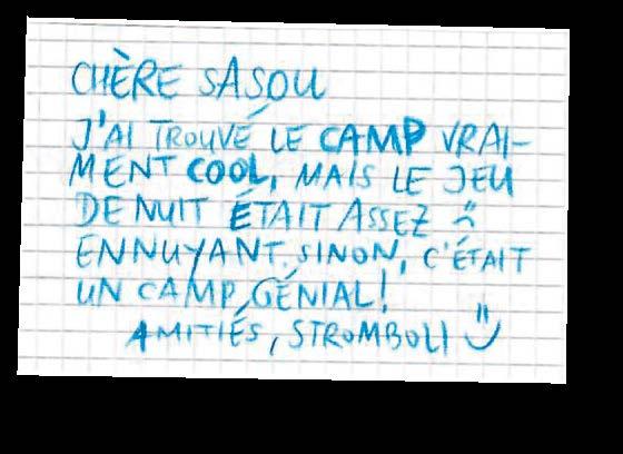 La poste est là ! Cartes, lettres et autres messages Le magazine du Mouvement Scout de Suisse N° 55 | Hiver 2023 APPRENDRE POUR LA VIE Ce qu’on peut faire grâce aux scouts CAMP FÉDÉRAL Qu’est-ce qui se passe après le mova ?