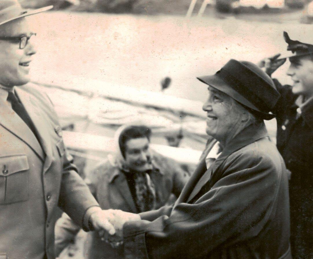 Lady Olave Baden-Powell zu Besuch bei der Seepfadi auf der MS Teist, 1965.