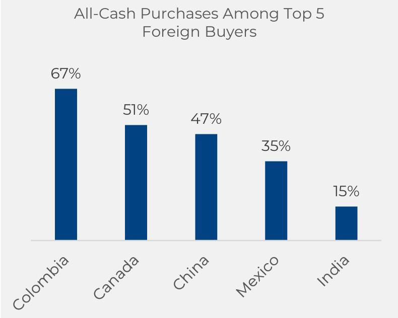 Florida still tops the charts for international real estate transactions. The latest research from NAR, for the year to March 2023, found that 23% of all international real estate transactions, where either the buyer or seller was a foreigner, took place in Florida. Almost double its nearest rival, California, with just 12%.