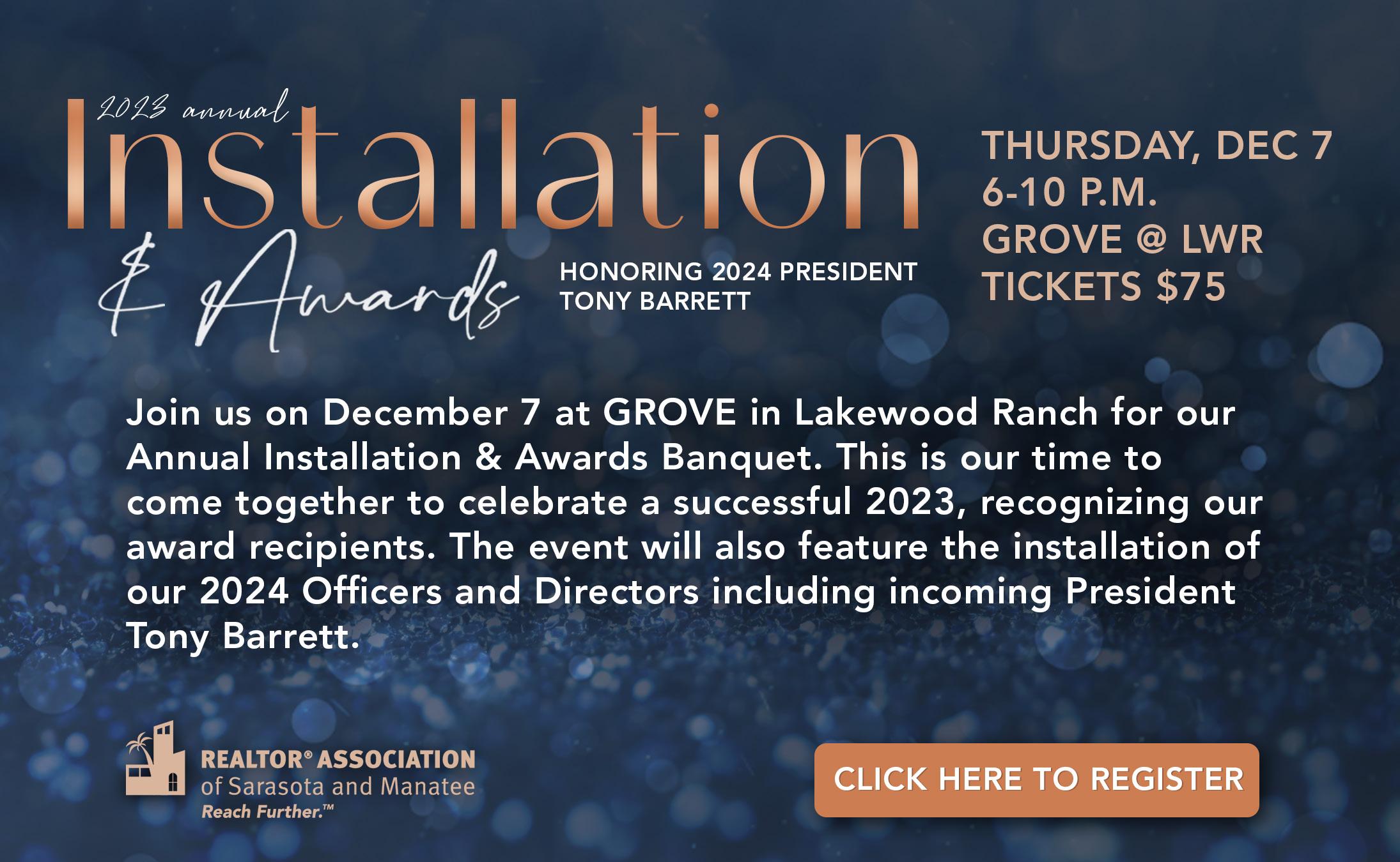 Byline articles and columns express the opinions of the writers and do not necessarily reflect the policies or sentiments of the REALTOR ® Association of Sarasota and Manatee, Inc. All submitted copy is subject to editing. 2023 Copyright © by the REALTOR ® Association of Sarasota and Manatee, Inc. All rights reserved. Reproduction in whole or in part without written permission is prohibited.