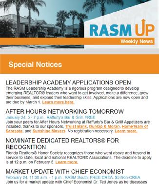 education events per month. Swing by Special Interest Groups like our Young Professionals Network, Global Business Council and Commercial Real Estate Alliance for networking and education. Receive RASM’s weekly E-Newsletter or monthly magazine, ELEVATE, for up-to-date information. At RASM, there are so many places to connect and grow your business.