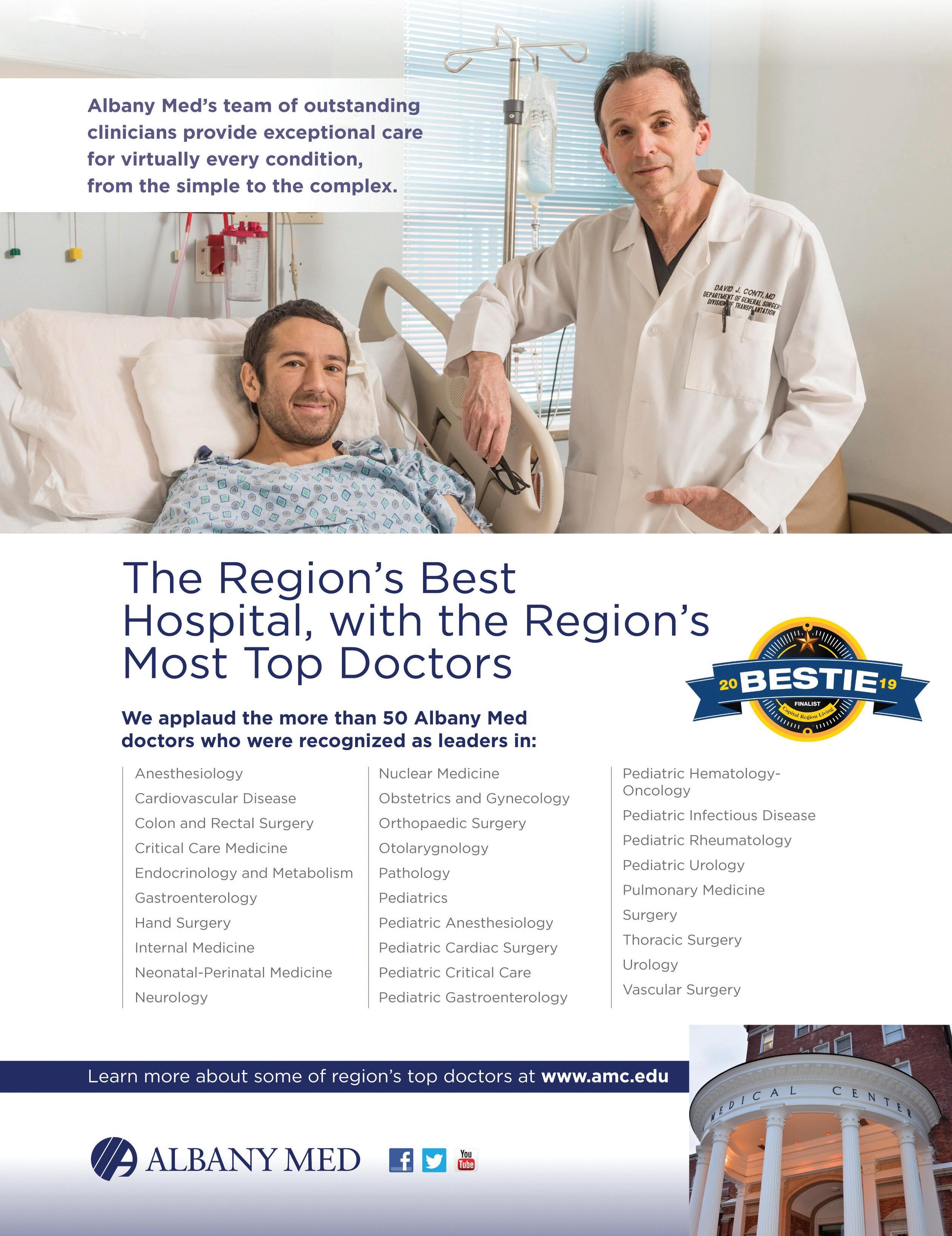 We are also so proud to once again bring you the Best Doctors list for the Capital Region. This list is a comprehensive look at the top providers, by specialty, as recognized by their peers. We have included a special con‐versation with a local lupus patient and her physician to find out what it means to be diag‐nosed and live with this mysterious disease. We also meet David Gray, a Capital Region man who received a life‐saving heart trans‐plant that truly changed his life.