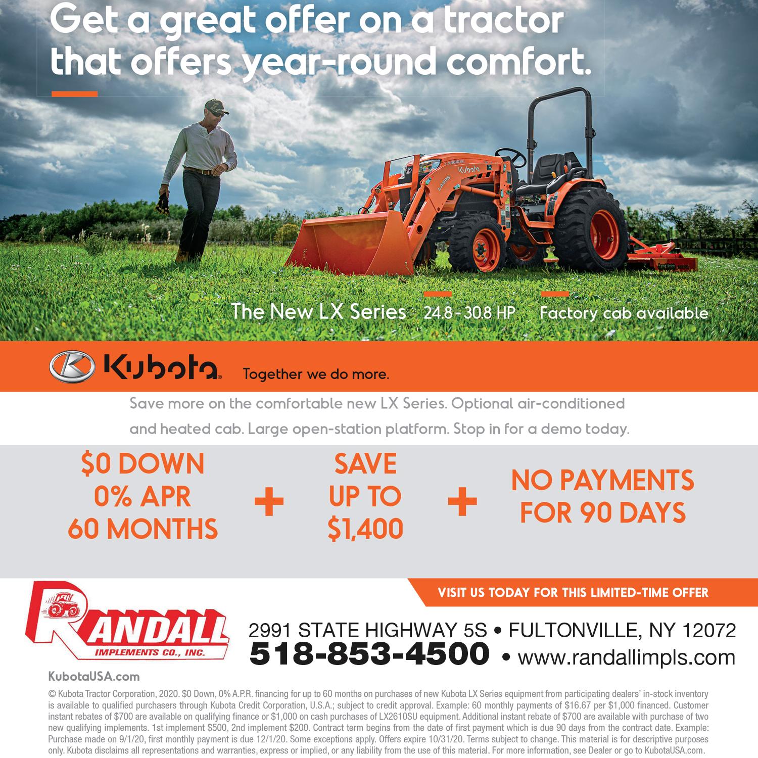 Randall Implements Co., Inc. is a Premier Kubota Dealer and was the 2016 recipient of the Fulton-Montgomery Chamber of Commerce Agricultural Business of the Year award. It is located on State Highway 5S in the village of Fultonville, approximately 35 miles west of Albany. Founded in 1966 by Robert Freeman, Randall Implements has grown from a small, single-line dealer to one of the area’s largest and most trusted full-service multi-line providers, including Ferris, Husqvarna, Case IH, Claas and Landpride dealerships. Technicians are certified and trained in the newest technologies available in the industry. Randall provides quality factory parts at competitive prices, with next-day availability on more than 100,000 parts.