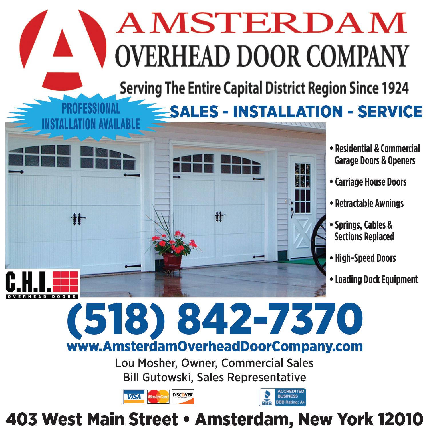 industrial applications. Its staff has proven expertise in every phase of garage door selection, installation, maintenance, service and repair. Getting the proper advice when buying a door is essential; after all, we buy only one or, at most, two garage doors throughout our lifetime. The Amsterdam Overhead Door Company is a family-owned business that was founded in 1924 and has an A+ rating through the Better Business Bureau.