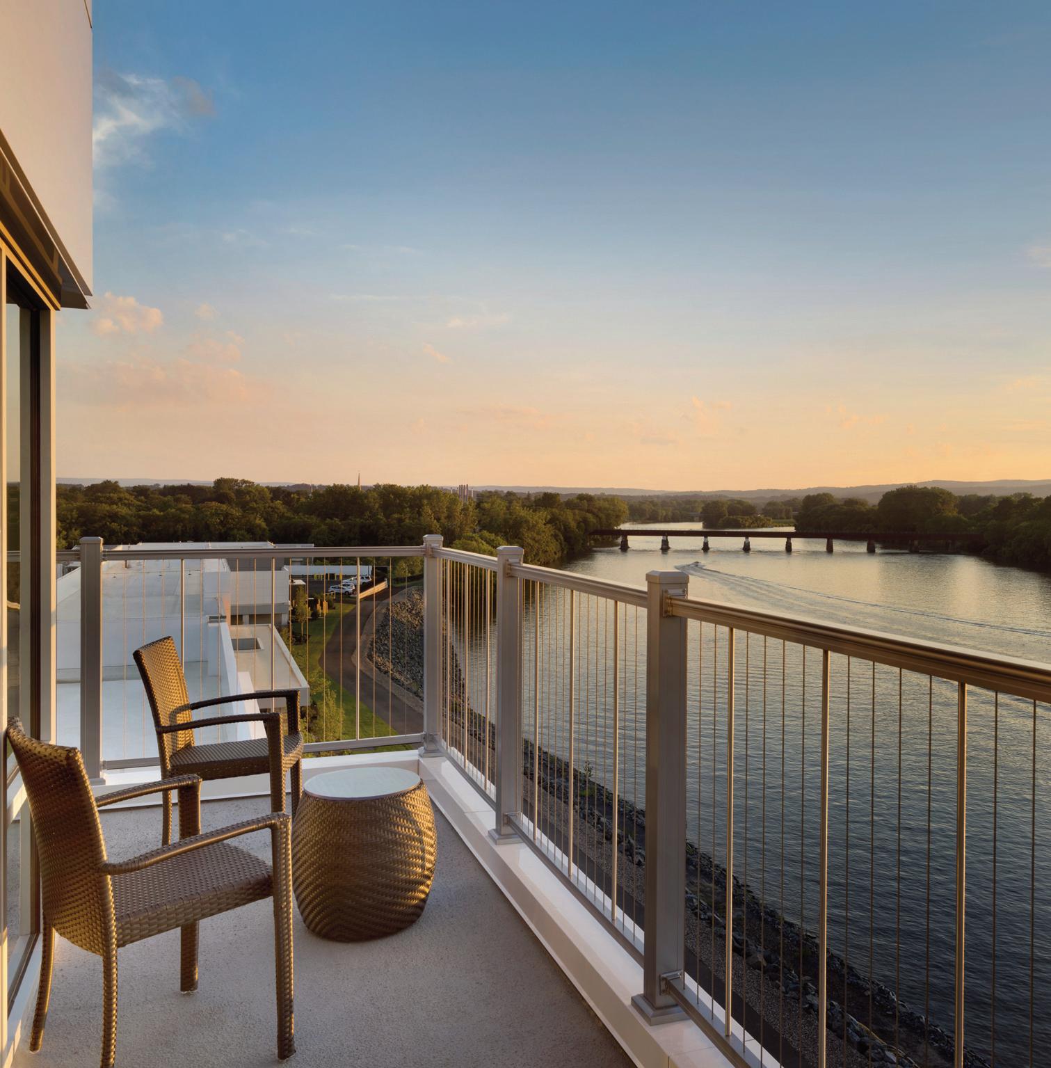 For a luxury room on the scenic Mohawk River, your best bet is The Landing Hotel at Rivers Casino & Resort, where after a fun night of gambling, you can enjoy your morning cup of joe on a wrap‐around balcony.