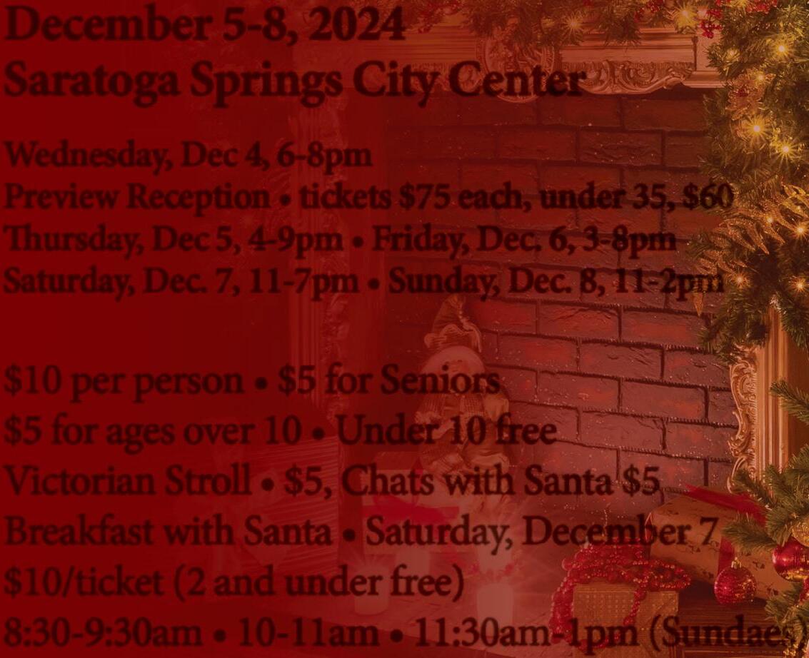 $5 for ages over 10 • Under 10 free Victorian Stroll • $5, Chats with Santa $5 Breakfast with Santa • Saturday, December 7 $10/ticket (2 and under free)