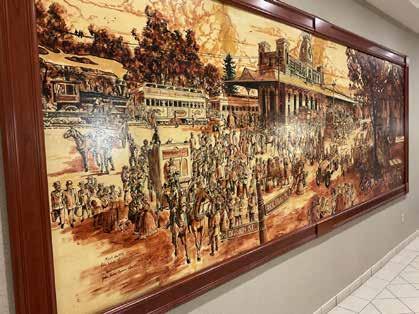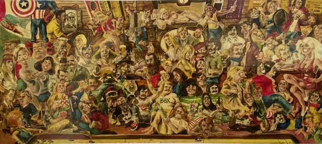 Hud Armstrong’s 16.5 foot by 5.5 foot framed mural from the Hub hangs in the first floor lobby of the Mabee Building as a nod to this spot’s past.