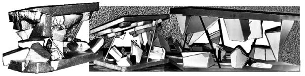 Le schegge rappresentano un insieme di significati, esperienze e memorie che si intersecano nel tessuto dell’abitare. L’architettura diventa così un campo di tensione tra la stabilità e l’instabilità e tra il presente e il passato. “L’architettura diventa una rappresentazione del corpo umano frammentato, smembrato che esprime le tensioni moderne”1.