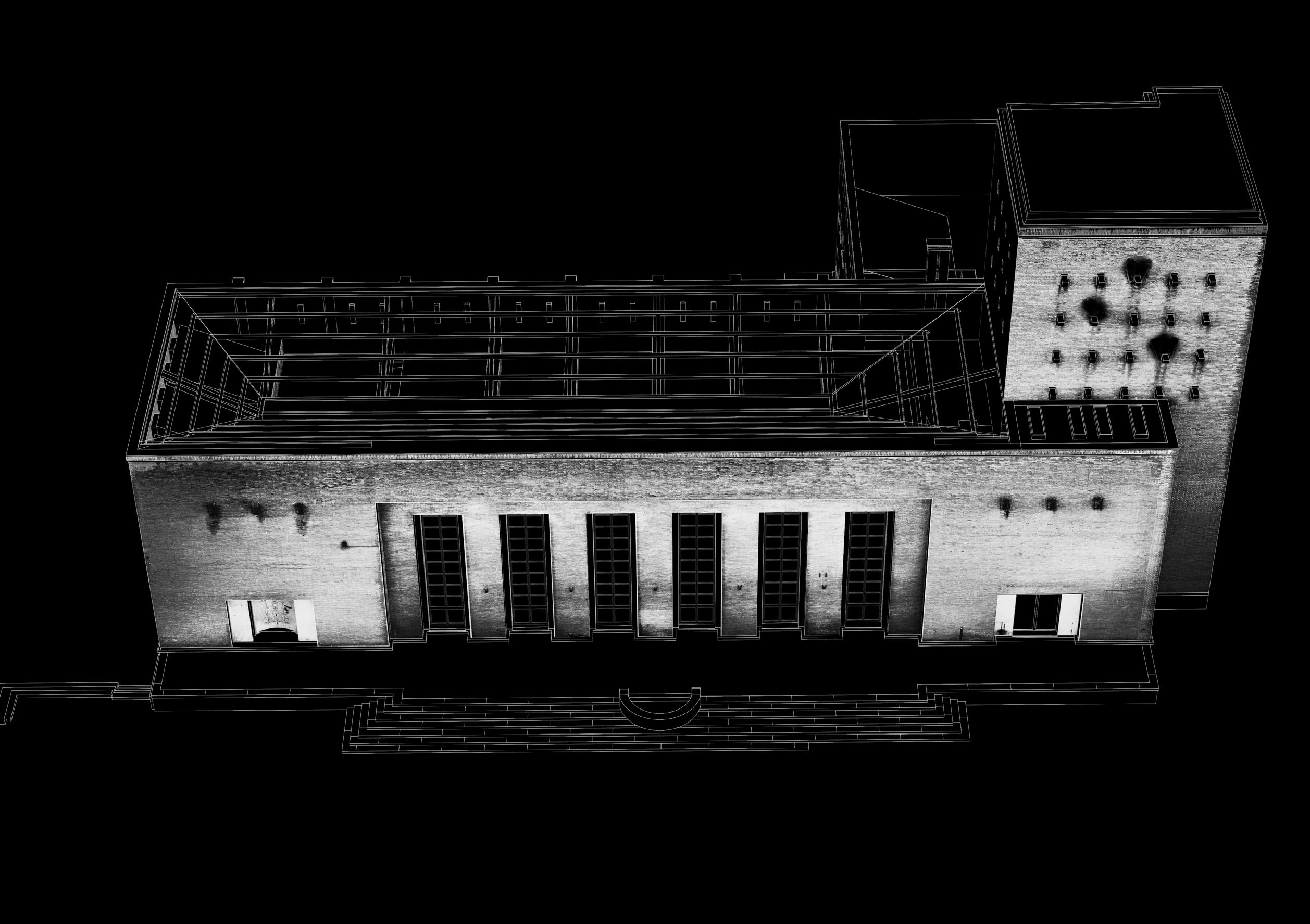 A. Sardei, Sporca vacuità, rielaborazione grafica di OMA, Casa da Música (1999-2005), ph: P. Ruault, 2024.