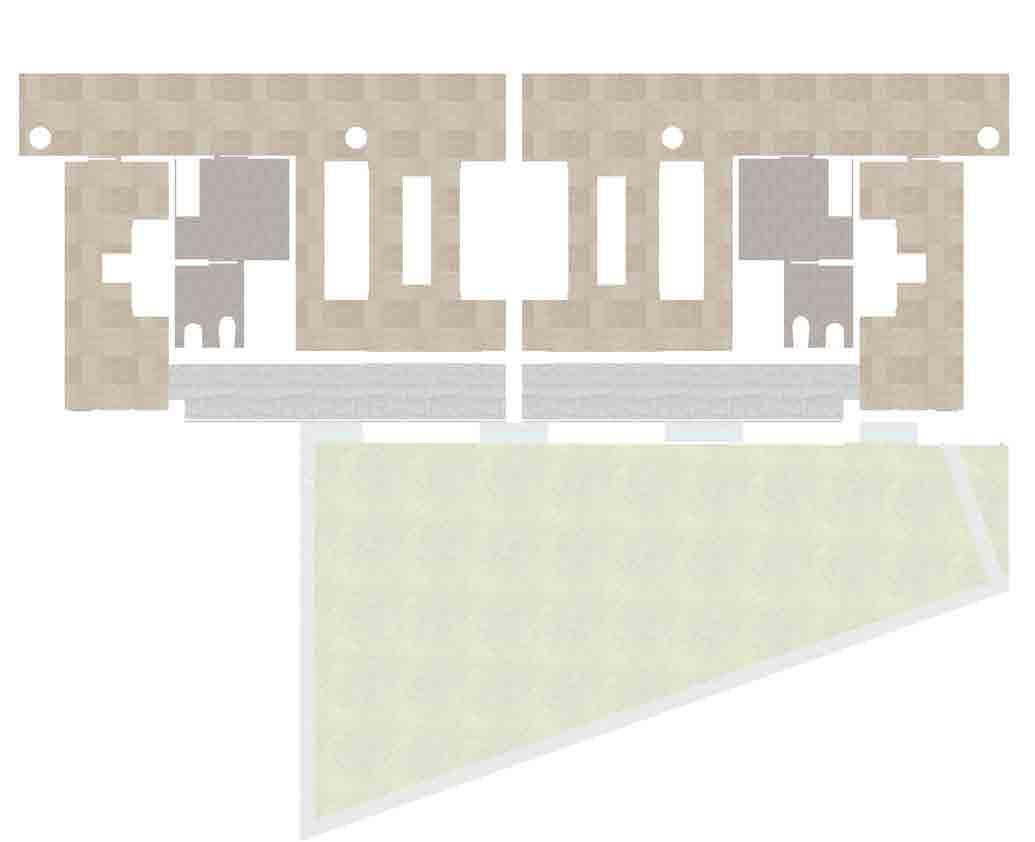 Rappresentazione assonometrica di due volte (assonometria cavaliera): volta a crociera rampante e volta a botte rampante