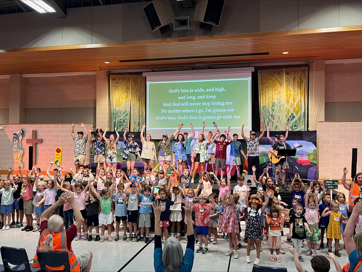 Vacation Bible School brought enthusiastic children and volunteers together for a road trip-themed adventure exploring God's constant love, while our youngest l i d P h l C i C filled with music,sto