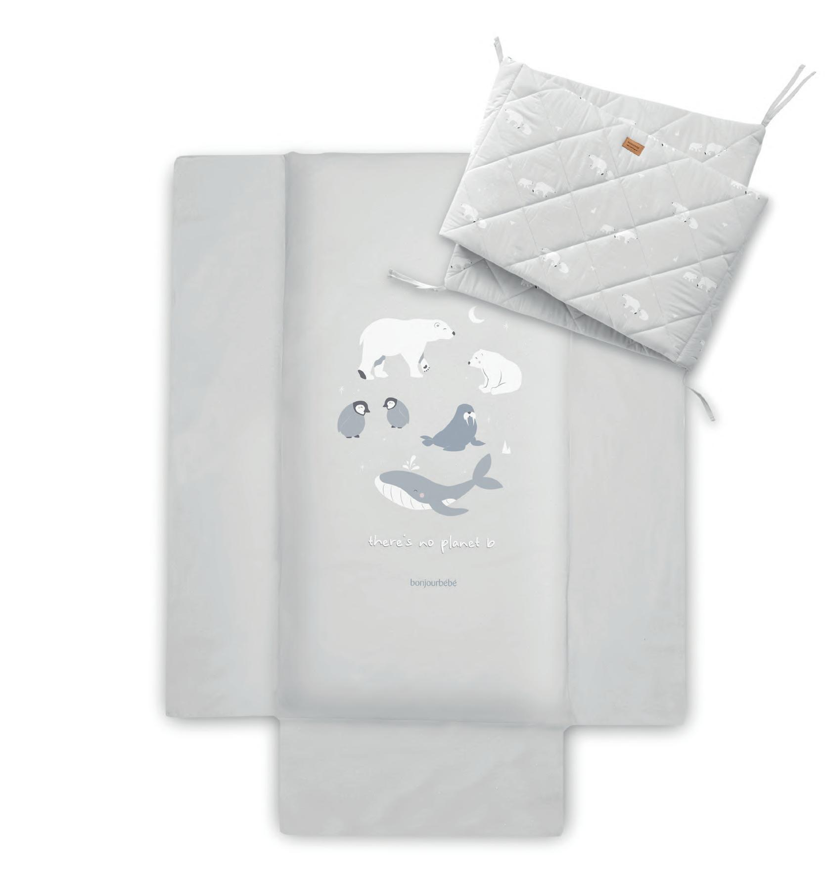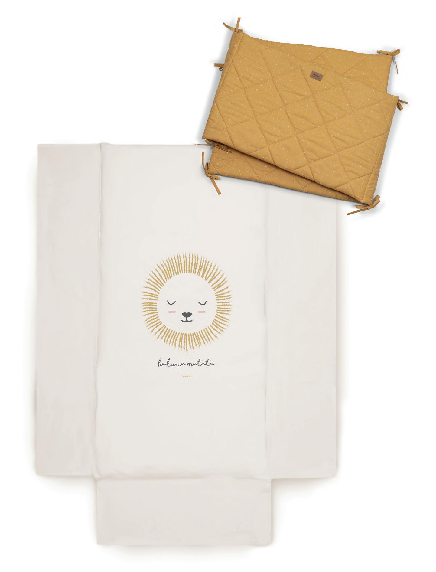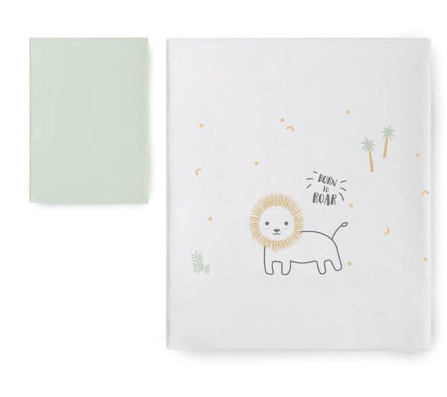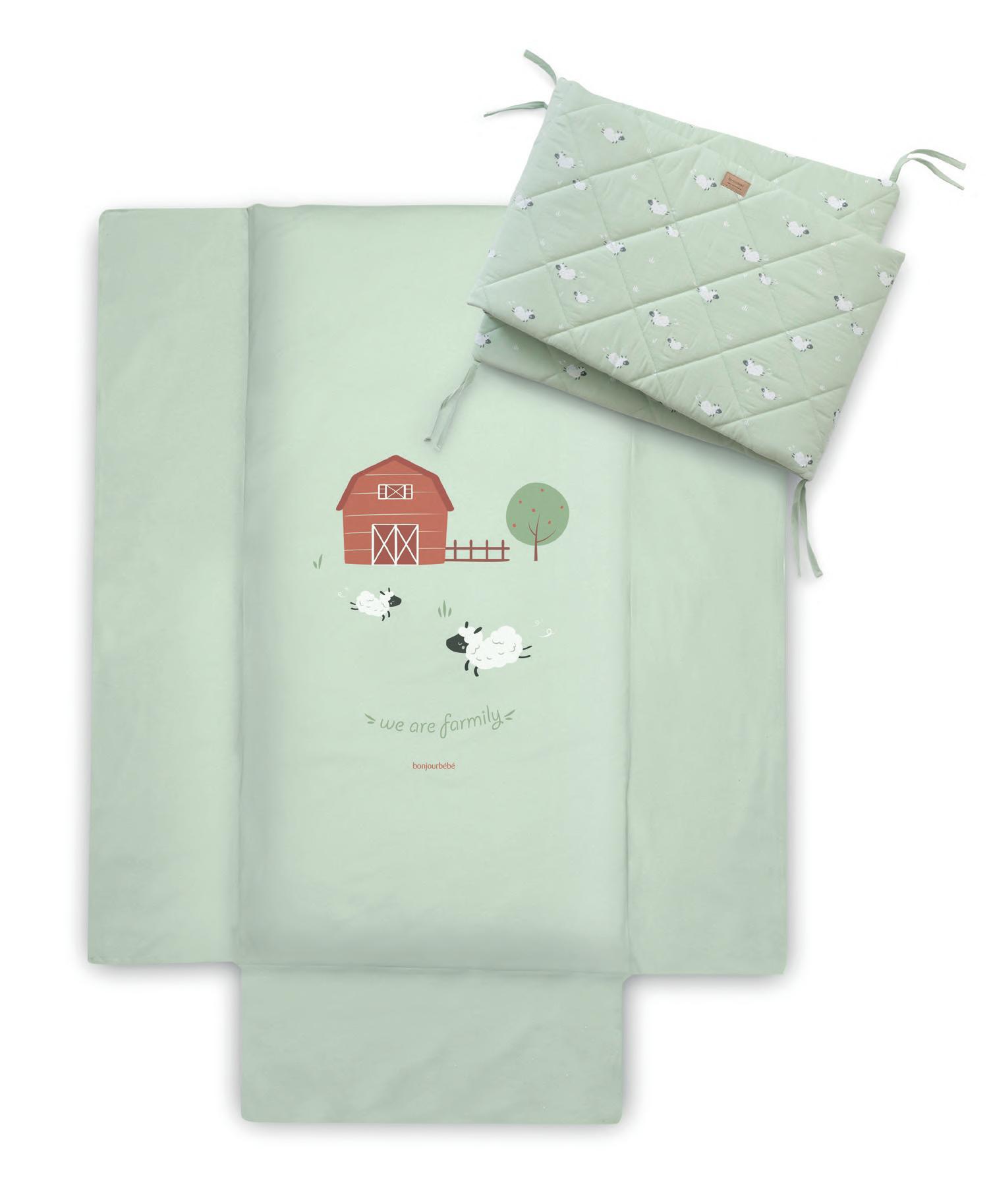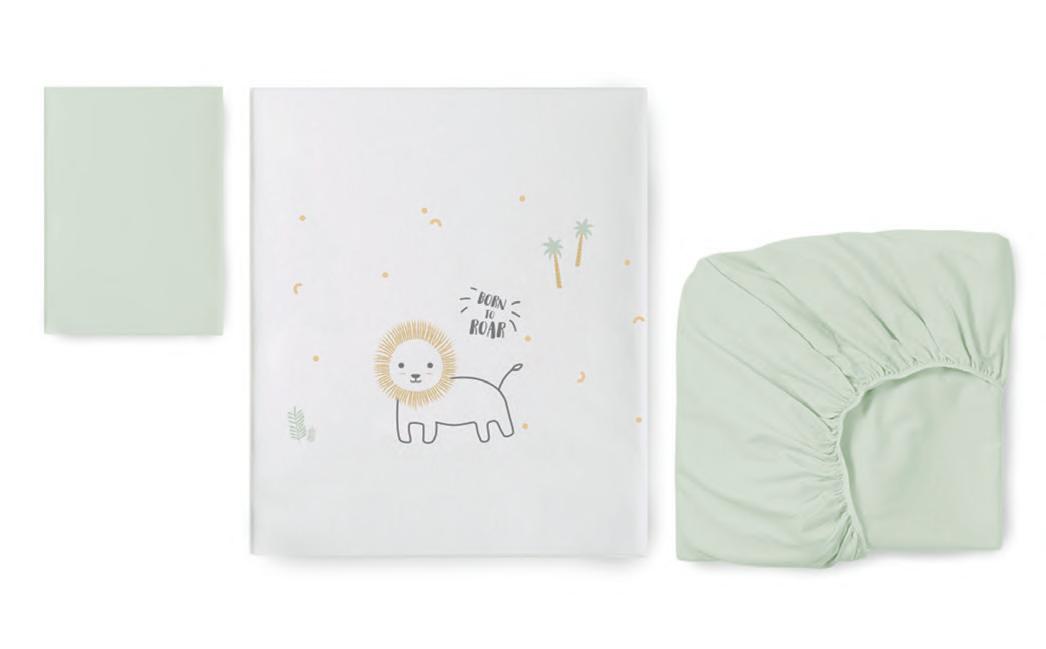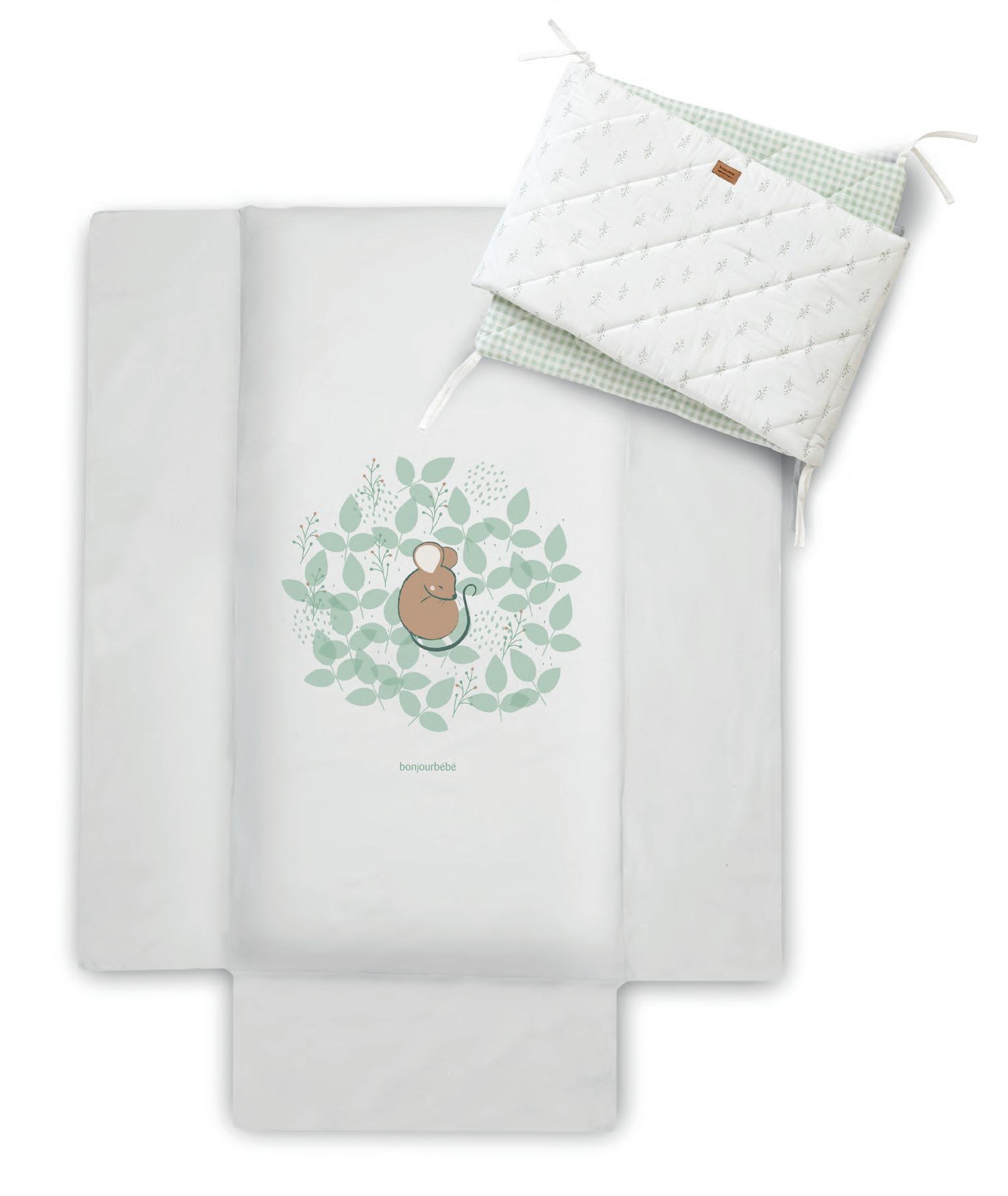 Includes mattress for 60 x 120 cm cot, duvet filler & protector. Incluye colcha para cuna de 60 x 120 cm, relleno nórdico y protector.